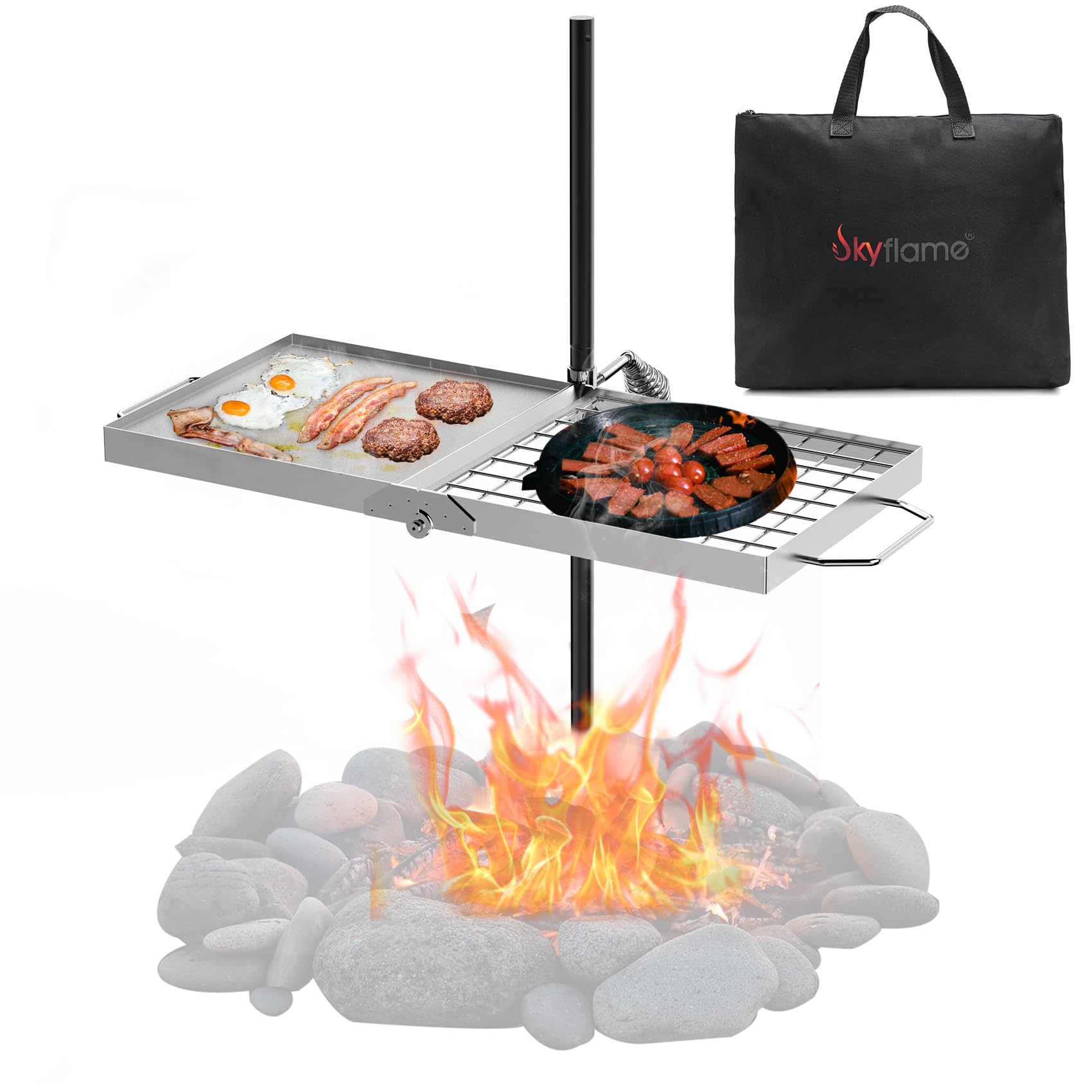 Foldable Design: The adjustable fire pit grill grate adopts foldable design, comes with a handy carry bag for transportation, which makes it compact to store and carry, ideal for those who love to grill wherever they go
