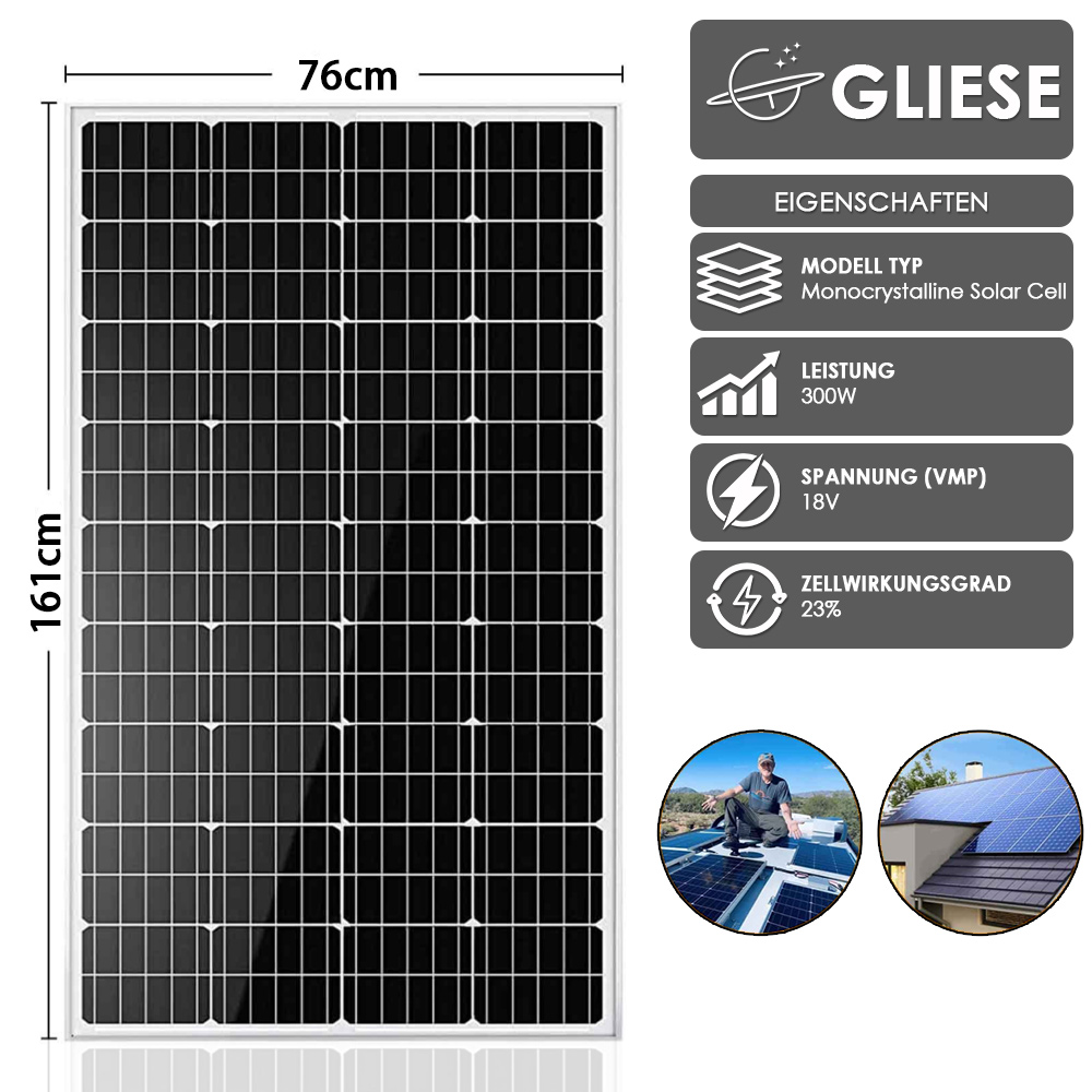 Gliese Das monokristalline 300 Watt 12 Volt Solarmodul ist die perfekte Option für jede netzunabhängige Anwendung.