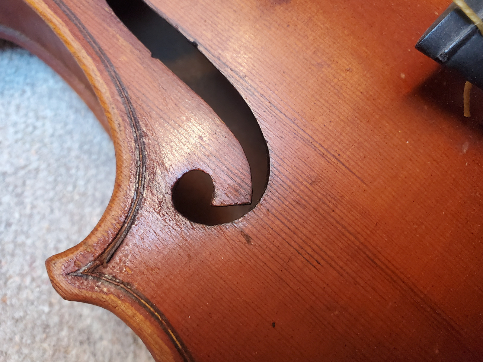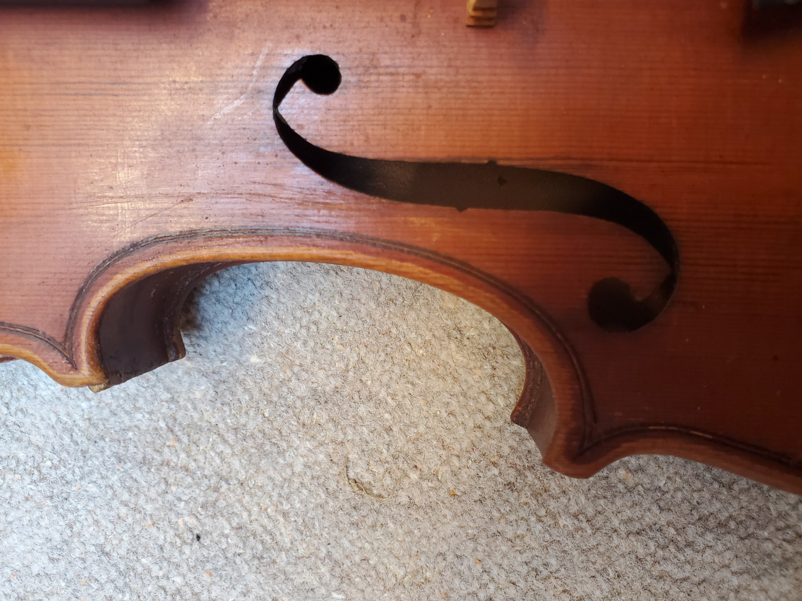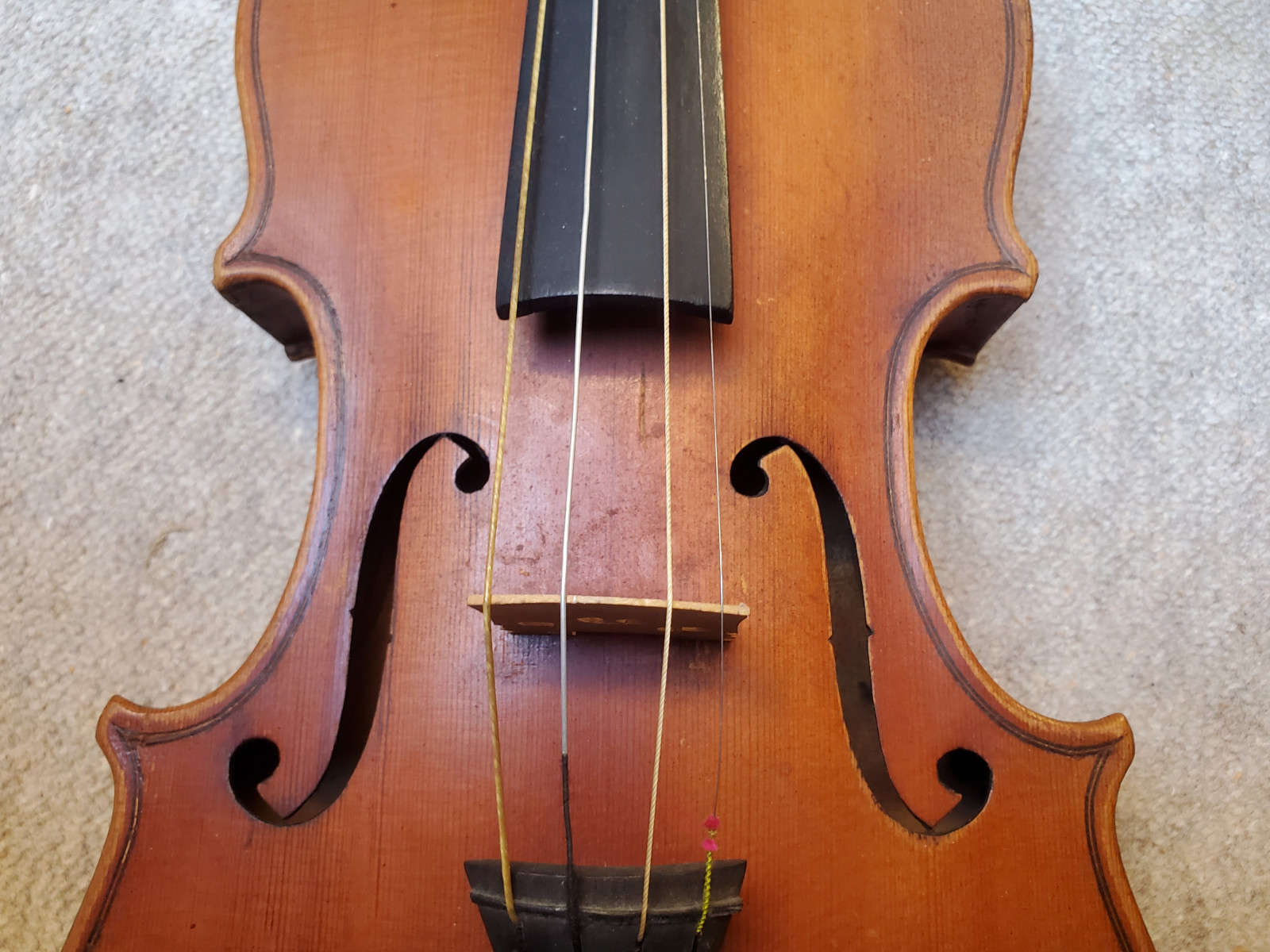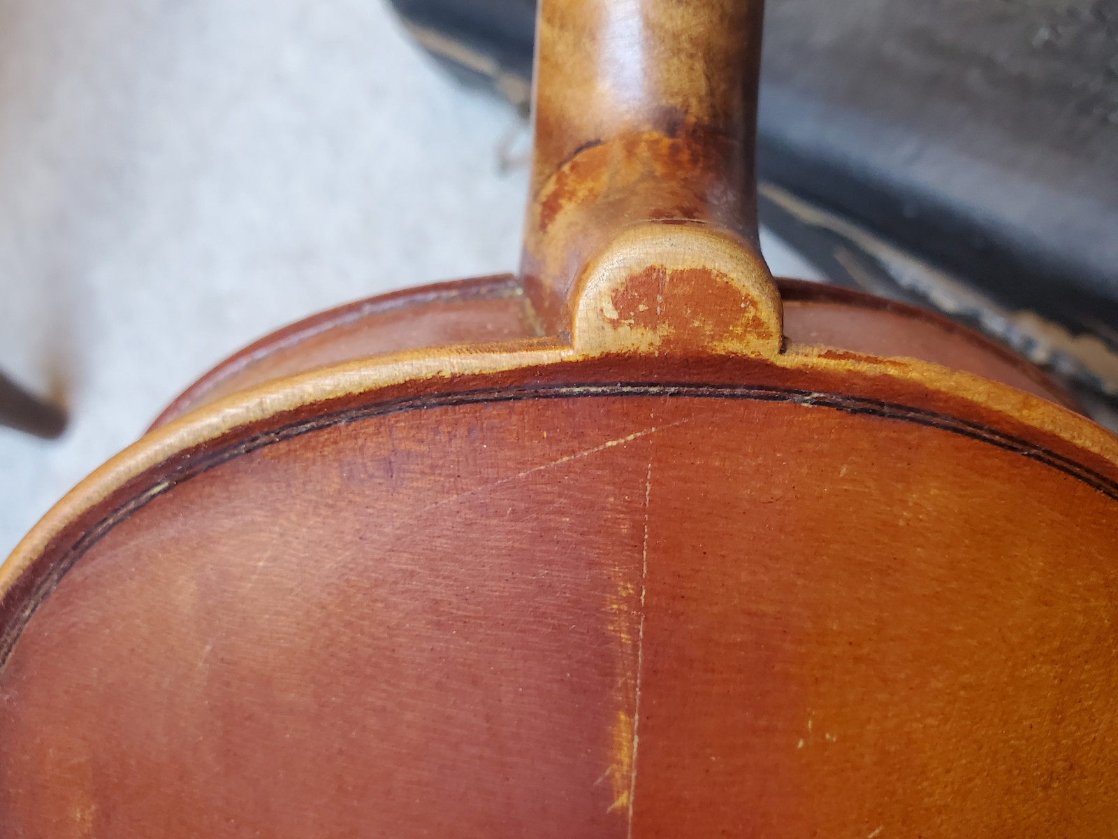 Nice old 4/4 (or 7/8?) violin No makersname to be found. The soundpost is ratteling inside. I found no cracks, but the front and the back of the violin are partly a bit loose. The length is 59cm/ 23 1/4 inch. The body is 35,6cm (14 inch). Instrument needs cleaning and service. If you have any questions, please ask. Insured shipping to USA or Canada amounts to 59 USD. Please also view my other auctions with instruments. Shipping several violins saves shippingfees. Please see my other auctions with string-, woodwind- and brass instruments ---------------------------------------------------------------------------------------------------------------------------------