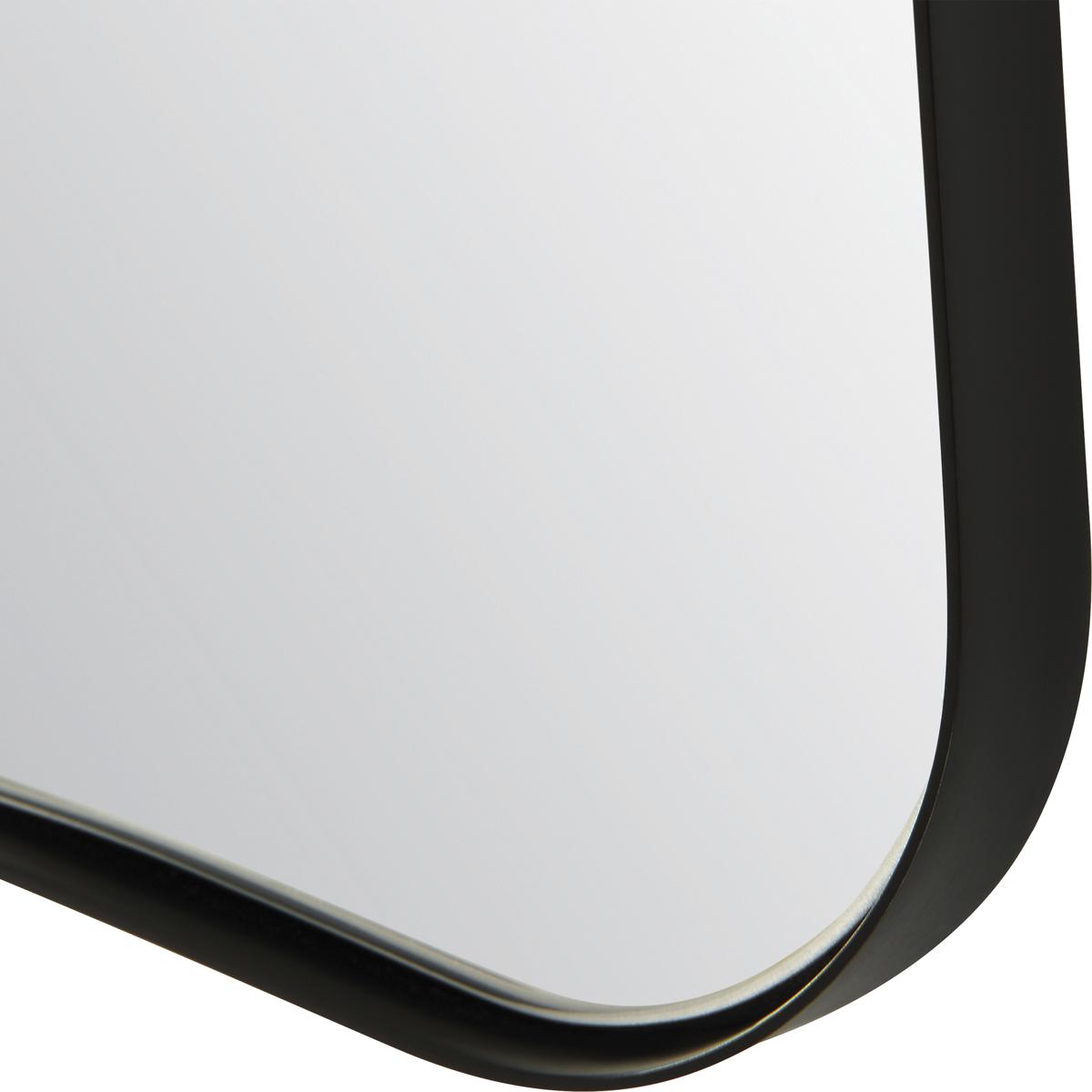 The Loudon Vanity Mirror Adds A Touch Of Femininity To This Otherwise Industrial Staple By Combining A Satin Black Finish To A Curvy Metal Frame Surrounding A Floating Polished Edge Mirror.