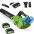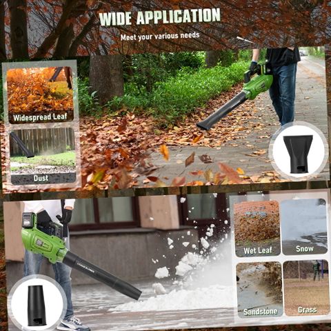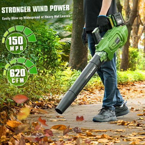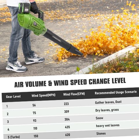 Experience efficient and versatile outdoor cleaning with the GASKY 40V cordless leaf blower. Powered by a robust brushless motor, it produces gas-like performance with airflow up to 620 CFM and wind speeds reaching 150 MPH to tackle heavy wet leaves, stubborn debris, and even light snow removal. The blower includes two high-capacity 4.0Ah lithium batteries that provide up to 120 minutes of continuous runtime, allowing you to complete large-area tasks without frequent recharging. With five adjustable speed settings plus a Turbo mode, you can customize airflow for delicate patio dusting or powerful yard clearing. Interchangeable flat and round nozzles enhance versatility for different surfaces and debris types. Designed for comfort and ease of use, this lightweight handheld blower features an ergonomic grip and starts instantly with a simple trigger pull. It is a quiet, clean alternative to gas-powered blowers, ideal for residential and commercial lawn care, garden maintenance, patio cleaning, and seasonal debris removal.