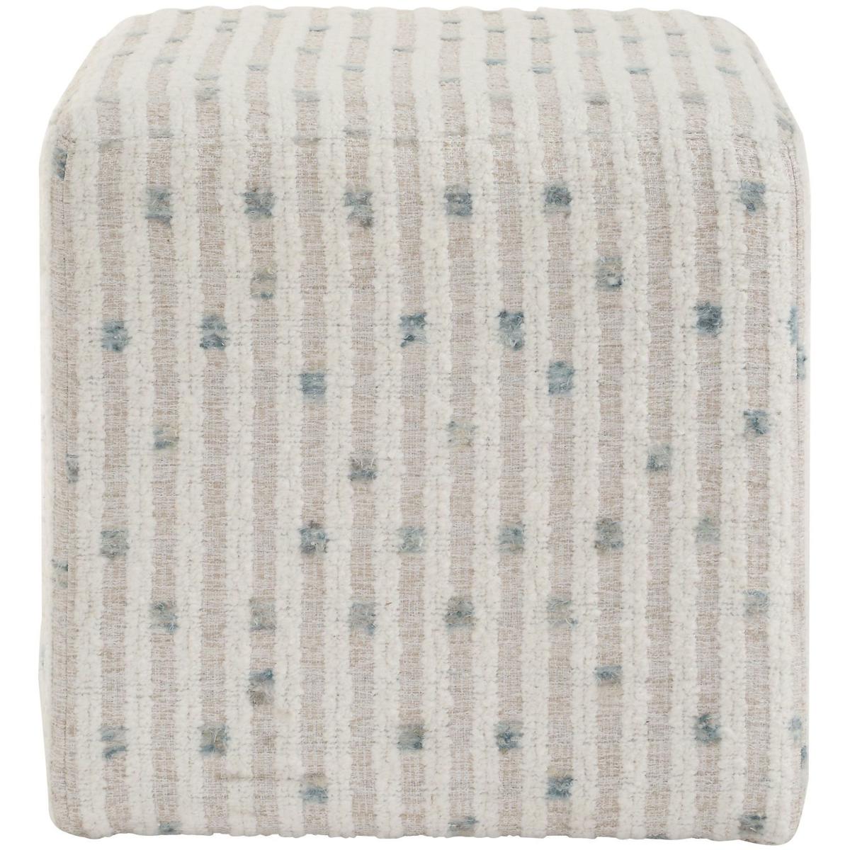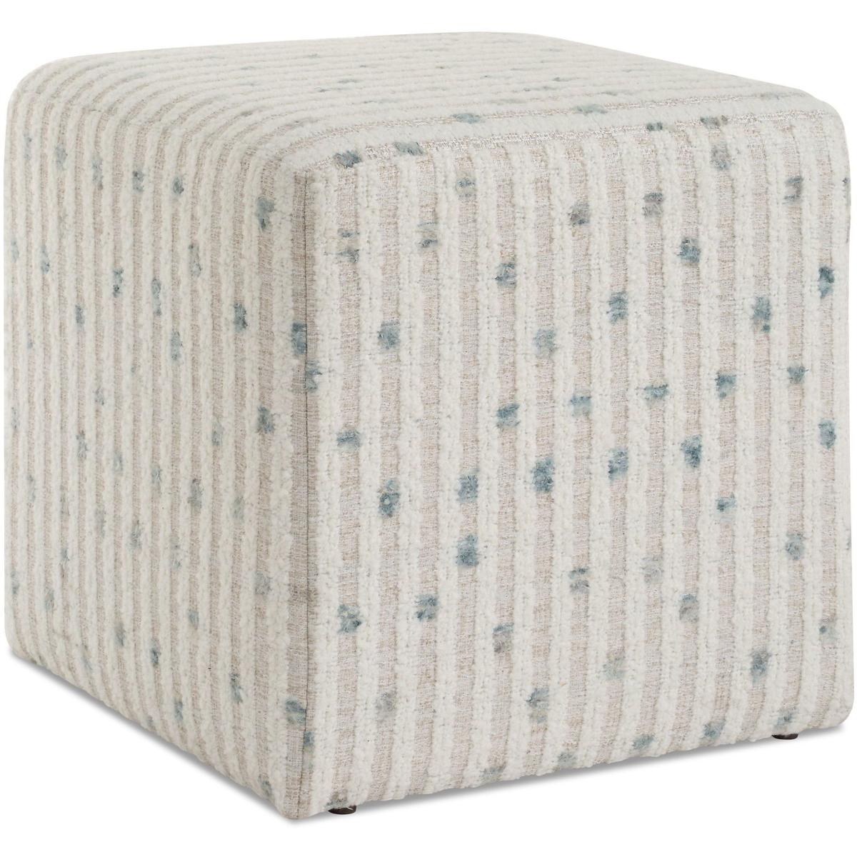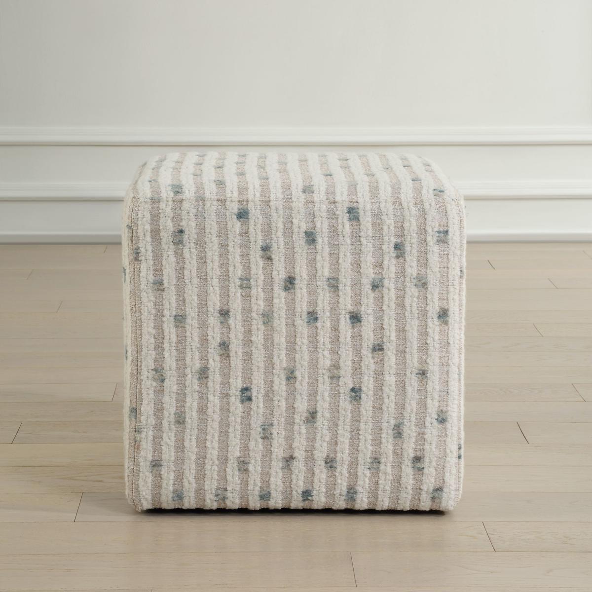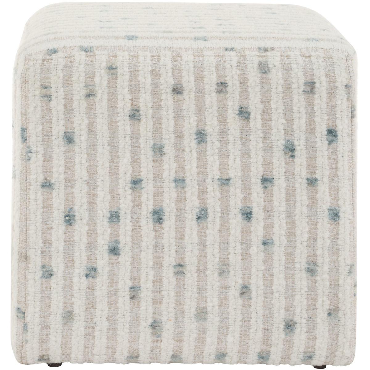 Serving As Both A Standalone Accent Piece Or Functional Seating, The Joie Ottoman Is Sure To Add Comfort And Style To Your Space. Covered In An Ultra Plush White Chenille Stripe Over A Flax Ground With A Fun Dot Of Sea Blue.