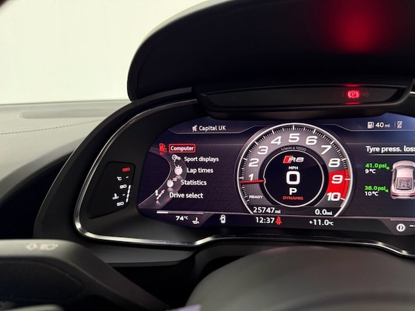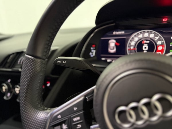 With an MOT valid until January 2027 and a full service history, this 2018 Audi R8 FSI V10 presents a compelling proposition. This striking supercar is powered by a potent 5.2 litre petrol engine, meeting Euro 6 emission standards. Its low mileage of just 25,747 miles is further evidenced by its last service in July 2025 at 25,478 miles, and a clear vehicle history check confirms its excellent provenance. Inside, youll find sophisticated Inlays in Piano Finish Black, the convenience of the Audi Smartphone Interface with both Android Auto and Apple CarPlay, and the Audi Phone Box for wireless phone charging. The cabin is further enhanced by stainless steel pedals and is complemented by impressive 20 inch alloy wheels in a gloss anthracite black Y design. The performance of this Audi R8 is truly exceptional, with an acceleration of 0 to 60 miles per hour achieved in a remarkable 3.7 seconds. This rapid acceleration demonstrates its superior engineering and capability compared to many other vehicles in its class. The combination of its advanced features, meticulous maintenance record, and exhilarating performance makes this R8 a standout choice for any discerning driver. As a premium Used Car Dealership, we truly believe in providing the best customer service and stocking the most desirable brands. Were proud to have 5-star reviews across Social Media, Google, AutoTrader and CarGurus. We also offer; Nationwide Delivery, Video Appointments and Walkarounds, competitive Part Exchange, Finance from 8.9% APR, and a 60-Mile Price Match Guarantee. Did you know, we can also liaise taxing the vehicle so its ready for you to drive away, plus youll get 3 Months Warranty as standard, with the ability to upgrade. Secure any car with a £199 Refundable Reservation Fee. All Vehicles are prepared to the highest standard, with a minimum of 6 Months MOT for your peace of mind and are HPI clear..1 Out Of 999 Made - Limited Edition, Maxton Design Kit Fitted, Parking System Plus inc Reversing Camera, Electrically Adjustable Seats, Fine Nappa Leather - Black with Ara Blue, Audi Phone Box with Wireless Charging, Headlights - High-Beam Assist, Sport Exhaust System, Audi Smartphone Interface, Audi Parking System Plus with Reversing Camera, Inlays - Piano Finish - Black, Fine Nappa Leather - Black with Ara Blue Stitching, Electrically Adjustable Seats, Pedals in Stainless Steel, 20in Alloy Wheels - 10-Spoke Y Design Forged Aluminium Wheels in Gloss Anthracite Black, Mythos Black, 1 of 999 - Badge on the Dashboard, 19in Alloy Wheels - 5-Arm V-Spoke Design Cast Aluminium in Gloss Black, 83L Fuel Tank, ABS - Anti-Lock Braking System, AMI - Audi Music Interface, ASF - Audi Space Frame, ASR - Anti Slip Regulation, Advanced Key, Airbags - Curtain, Airbags - Driver, Airbags - Front Passenger, Airbags - Front Side, Anti Theft Alarm and Immobiliser, Anti Theft Locking Wheel Bolts, Audi Connect Infotainment Services - 36 Month Trial, Audi Drive Select, Audi Sound System, Audi Sport Beam, Audi Virtual Cockpit, Auto-Dimming Rear-View Mirror, Bluetooth Interface, Brake Calipers - Gloss Black with R8 Emblem, Cruise Control, DAB Digital Radio, Deluxe 1-Zone Climate Control, Door Sill Trims - Aluminium with R8 Logo, Dual-Branch Chrome-Plated Trapezoidal Tailpipes, ESC - Electronic Stabilisation Control, Electric Windows - Front, Electromechanical Power Steering, Email and Text Messages can be Displayed on your Vehicles MMI, Exterior Mirror Housings in Body Colour, Exterior Mirrors Electrically Adjustable Heated Folding and Automatically Dimming with Integrated LED Indicator, First Aid Kit and Warning Triangle, Front Spoiler Lip in Matt Anthracite Black - Large Air Inlets in Gloss Anthracite Black, Heated Front Seats, ISOFIX Child Seat Mounting for Front Passenger with Airbag Deactivation, Integrated Head Restraints, Interior Lighting Pack, LED Headlights, LED Rear Lights and Dynamic Rear Indicators, Light and Rain Sensor, MMI Navigation Plus with MMI Touch, Parking System Plus - Front and Rear Sensors, R8 3-Spoke Flat Bottomed Multi-Functional Performance Leather Steering Wheel with 2 Operating Satellites, R8 Gear Lever in Aluminium, R8 Sport Suspension, Rear Diffuser Insert in Matt Anthracite Black - Air Outlets in Gloss Anthracite Black, Retractable Rear Spoiler, Seat Belt Reminder - Driver and Passenger, Seats - R8 Sport Seats, Sideblades - Body Colour - Lower, Singl