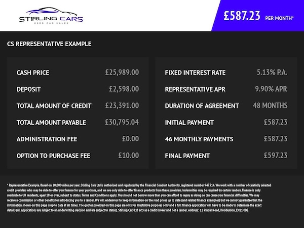 Here at Stirling cars we are specialists in sourcing and selling quality used cars. We have been selling cars for over 10 years and offer the best selection of used cars.