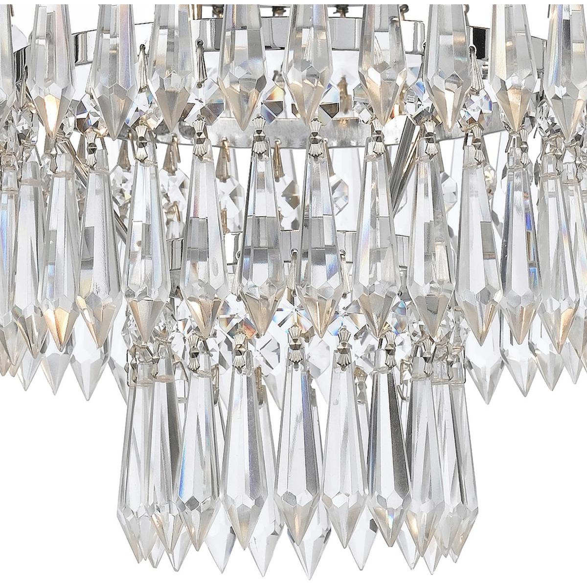 Dazzling with hand cut crystal, the Mercer Collection sparkles from all angles. Especially if viewed from the bottom, the unique design forms a stunning metal floral design. The opulent crystal paired with the hand painted metal work allows this fixture to bring luxurious appeal to a variety of interior spaces.