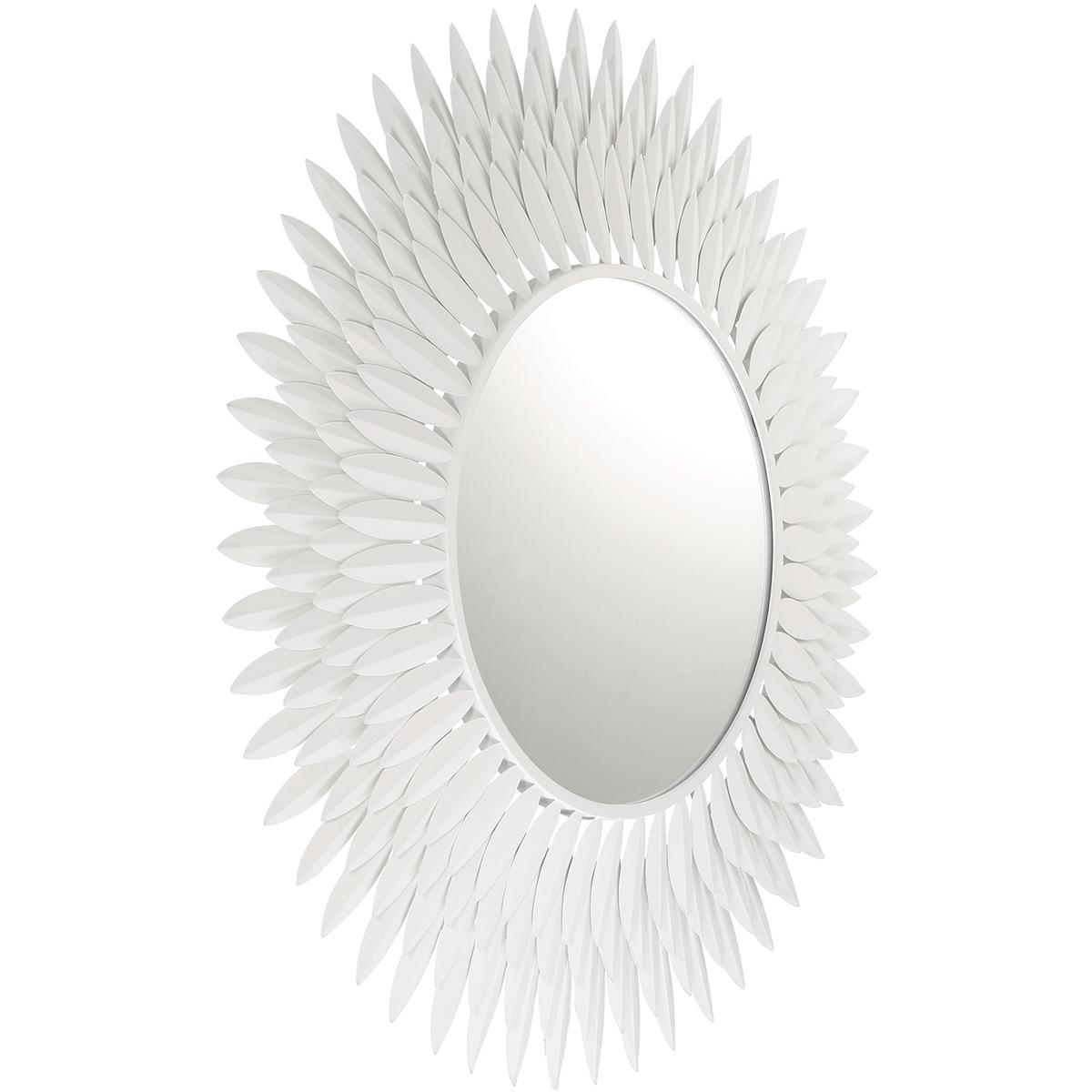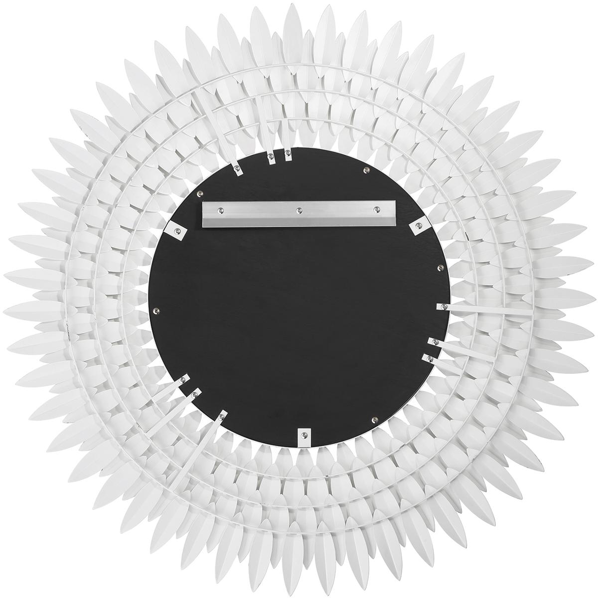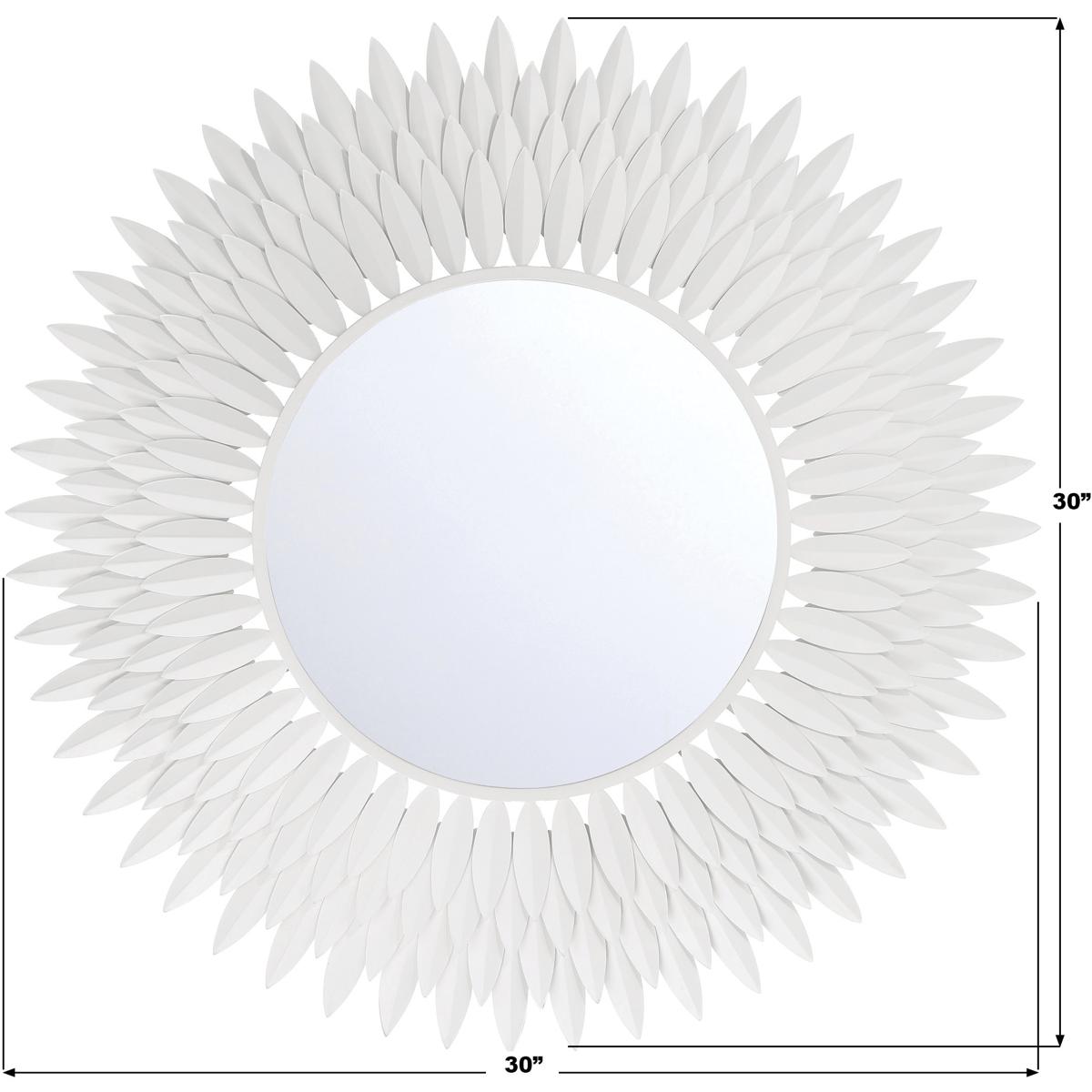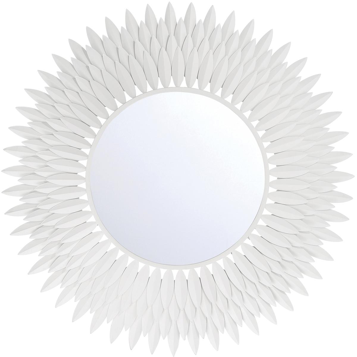Inspired by Crystoramas iconic Broche Collection, this stunning mirror brings sculptural artistry to wall décor. The mirror features a radiant sunburst design with hand-forged metal leaves arranged to evoke elegance and organic beauty. The intricate leaf-shaped detailing channels a refined sense of nature-inspired aesthetics, adding warmth and charm to any interior. This mirror is ideal as a focal point in entryways, living rooms, or bedrooms, and it pairs beautifully with contemporary and classic design styles.