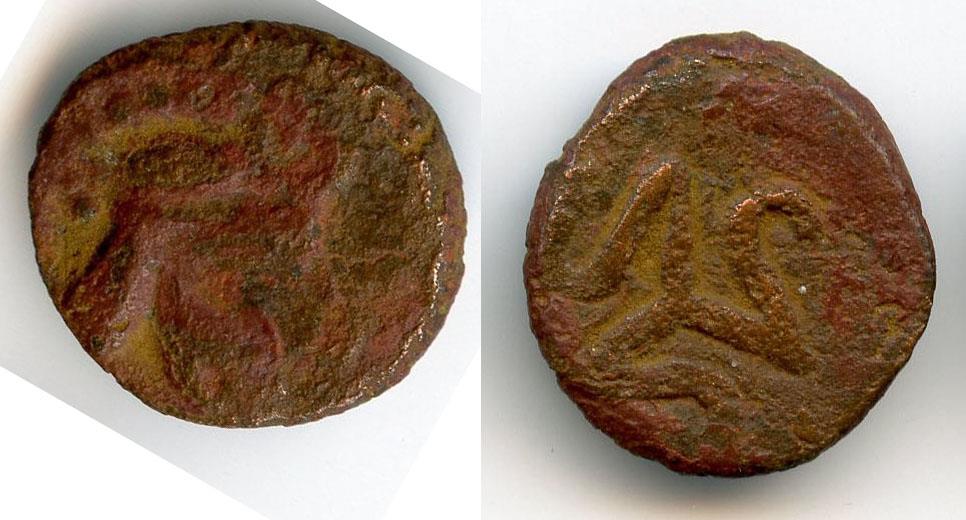 (h355) Ancient Khwarezm. AE small. 2-4 Ct. AD. Vainberg B2/15. Sh.#402a