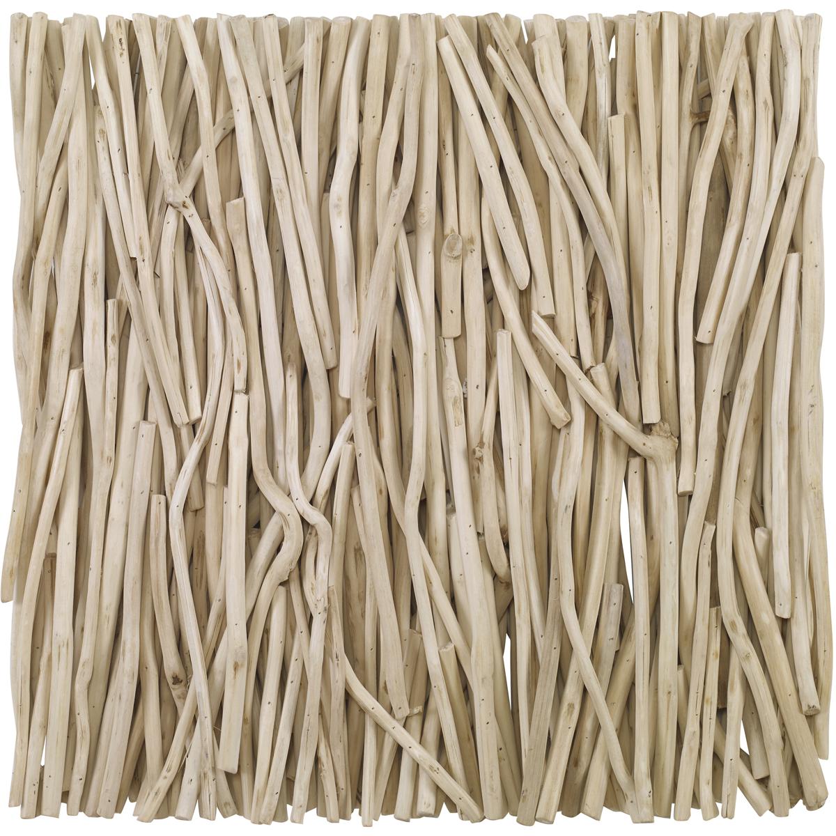 This square wood wall panel is artfully created from teak branches in a refreshing bleached finish. May be hung horizontal or vertical.