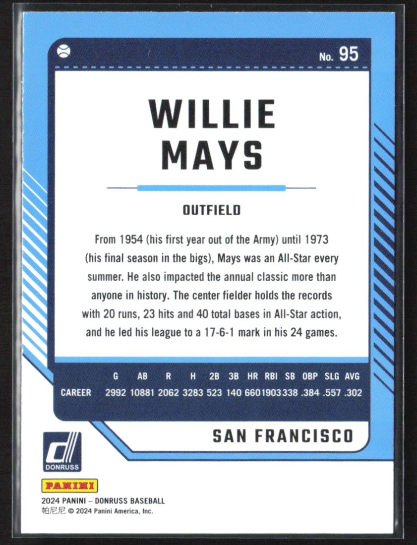 | Willie Mays 2024 Donruss Red & Green Laser #95 San Francisco Giants |