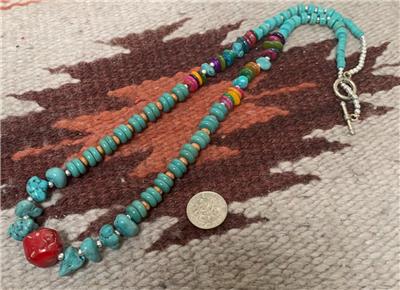 • type of gem: block(reconstituted) turquoise /seashell/coral