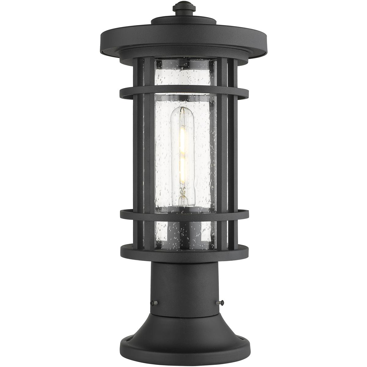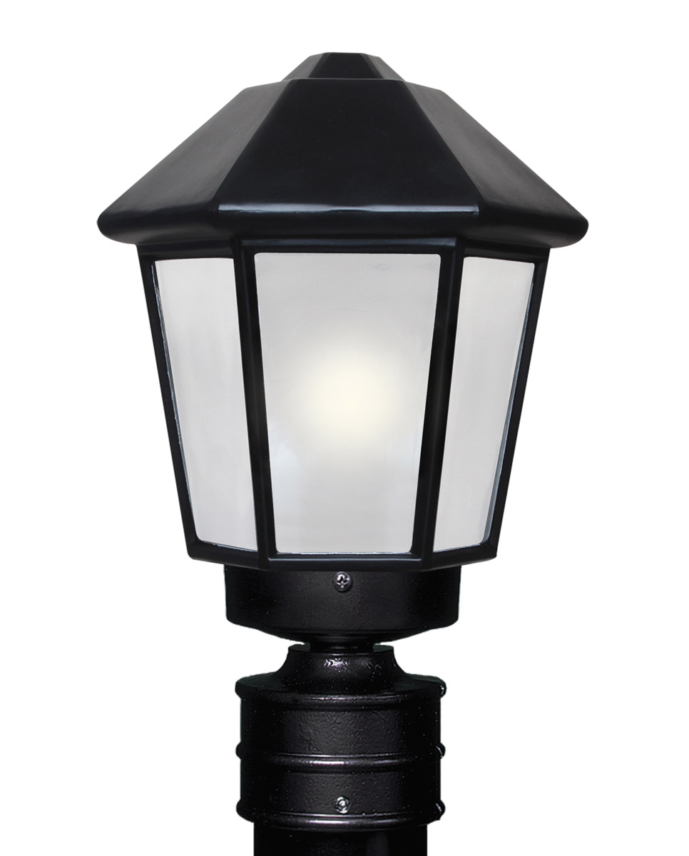 Series 3272 post mount feature blown glass with a classic architectural shape. The black finish is opaque. The inside of the glass is softly frosted to enhance the appearance.