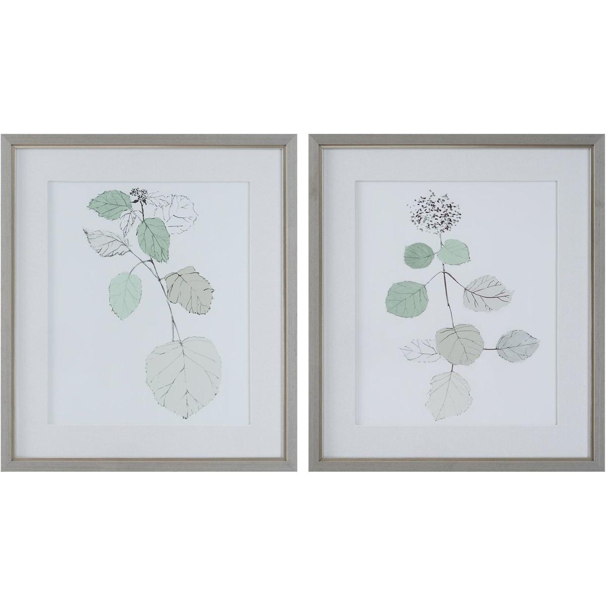This Set Of Framed Prints Showcases Abstract Compositions In Cool Olive, Mauve, Rose, And Gray Tones. Each Piece Of Art Is Placed Under Glass And Surrounded By Double White Matting And A Solid Wood Frame In A Light Oak Finish. Artwork By Jennifer Goldberger.