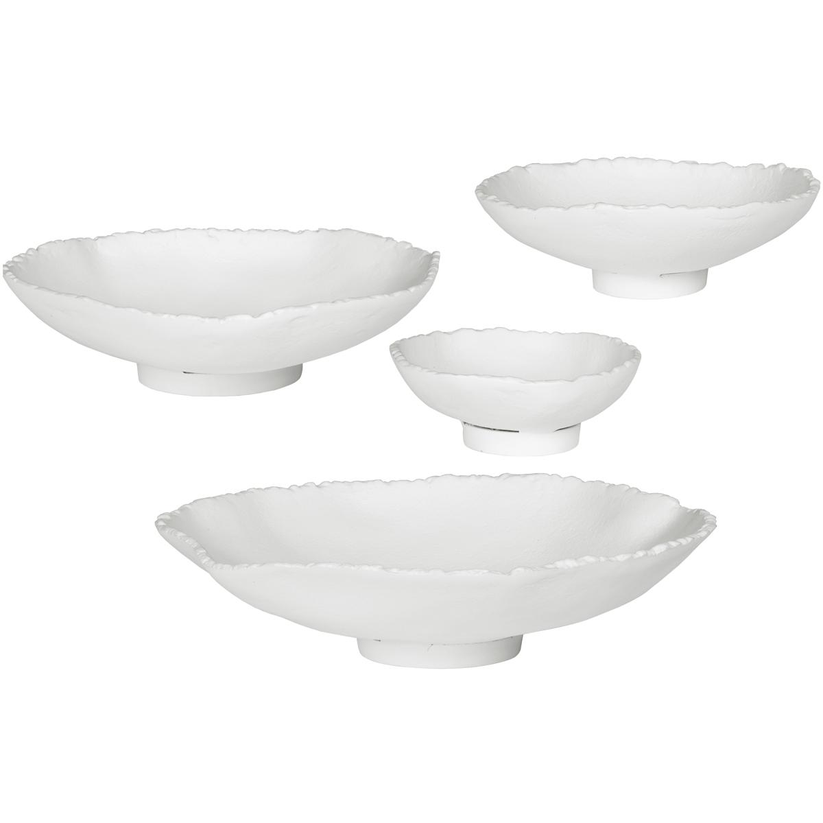 Handcrafted From Aluminum, These Metal Wall Bowls Feature Noticeable Textural Elements With Organic Edge Details And Are Finished In Matte White. May Be Hung On A Wall With Keyhole Hangers, Or Displayed As Tabletop Accessories. Sizes: Sm-5x5x1, Med-7x7x2, Lg-9x9x2, XL-11x11x3