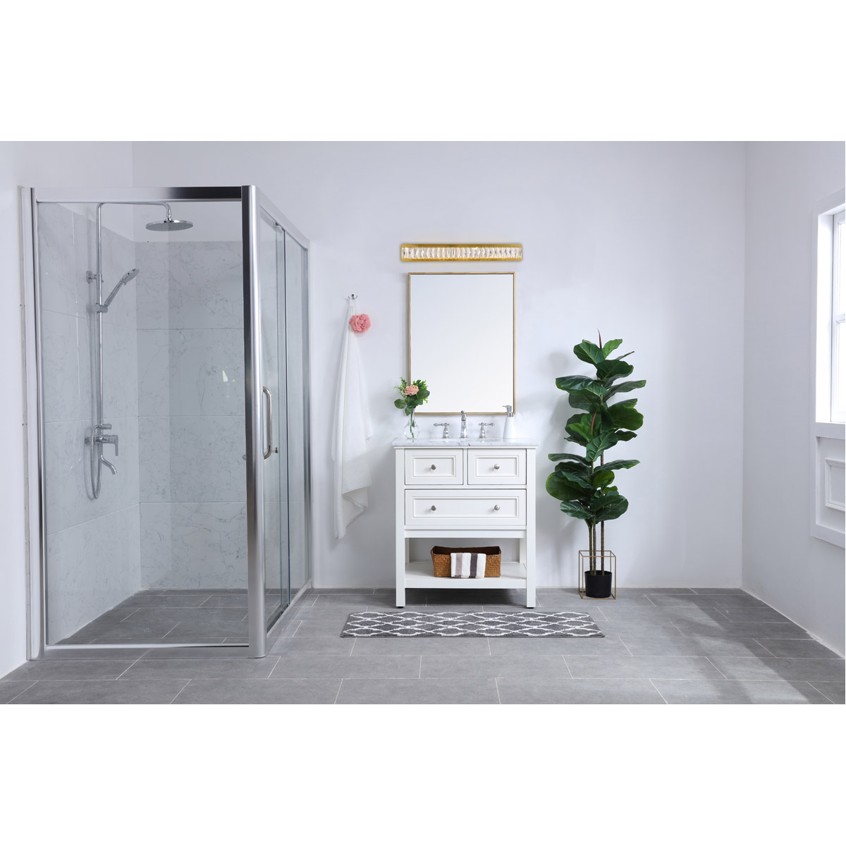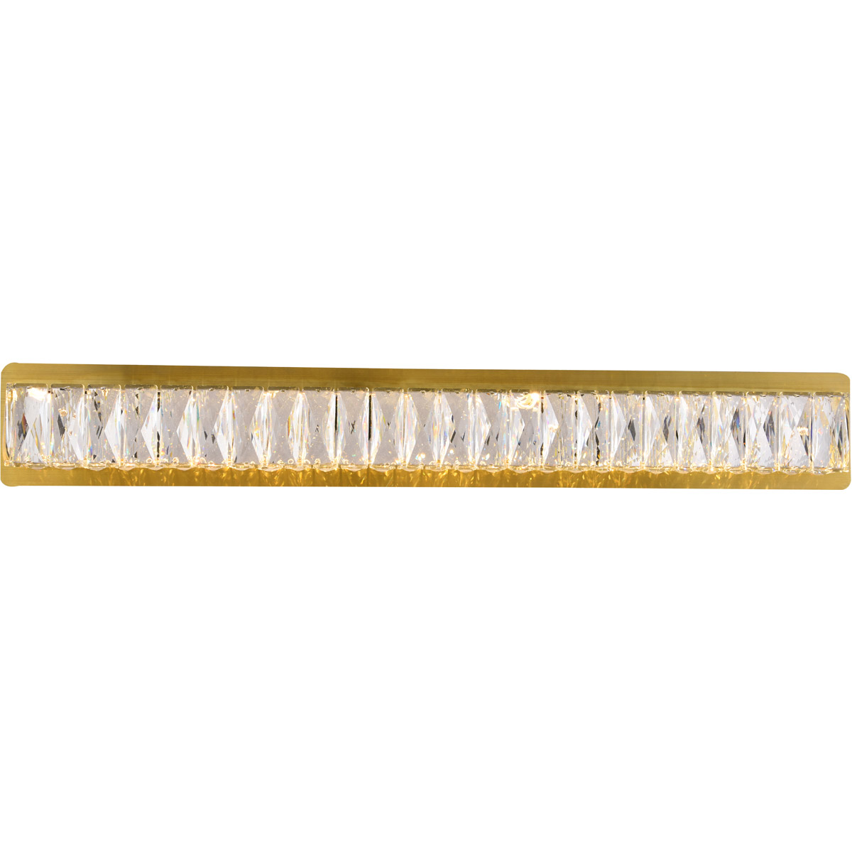 Monroe collection wall sconces dress up a bathroom, office, or bedroom without overwhelming the surrounding décor. A rectangular stainless-steel frame and backplate would seem austere if it weren’t covered by a row of shining rectangular royal-cut clear crystals. The gold-finished backplate is polished to a mirror shine and reflects the glittering crystals for additional sparkle. Available in three size options with a sleek gold finish that completes this modern look.