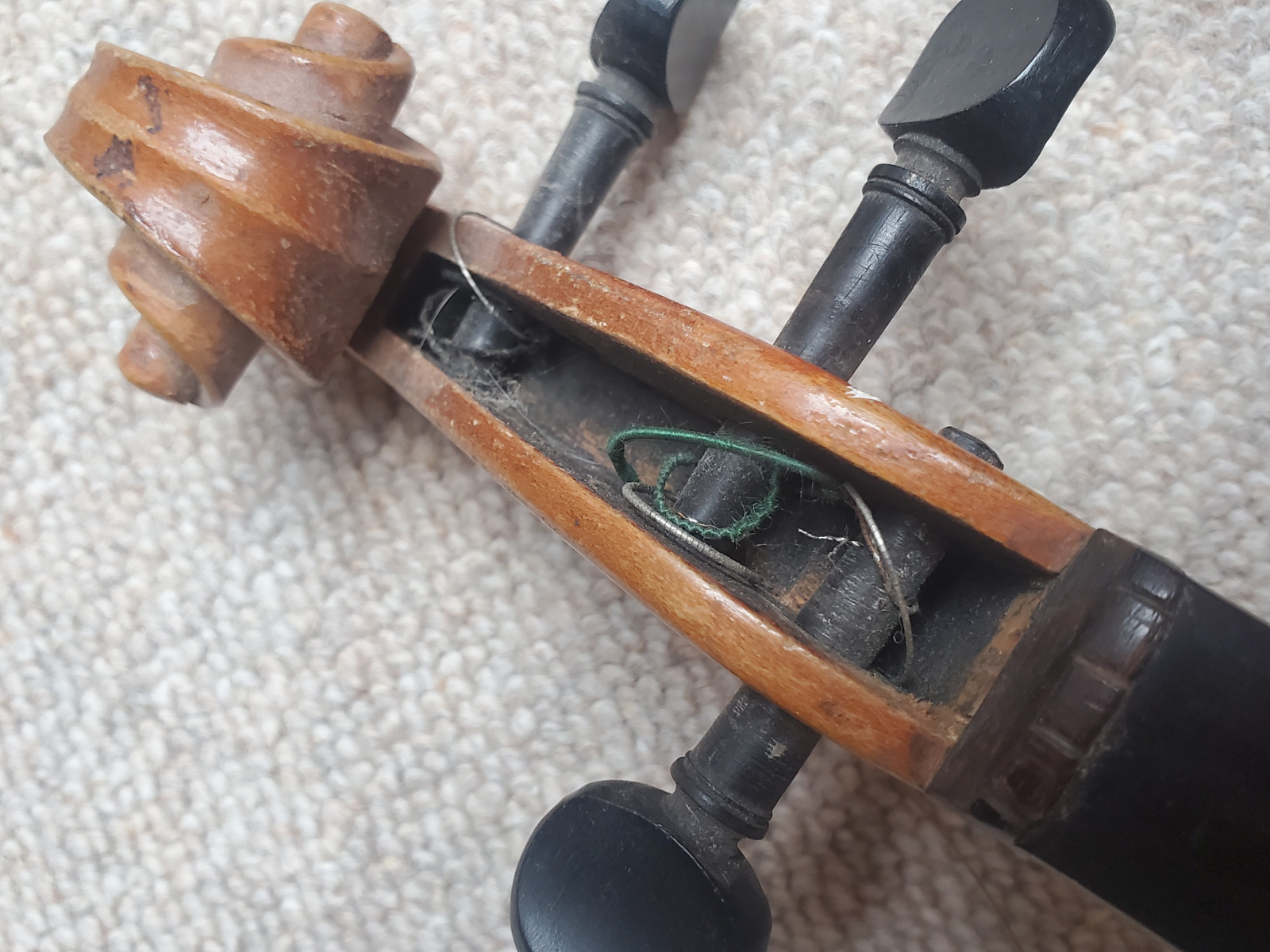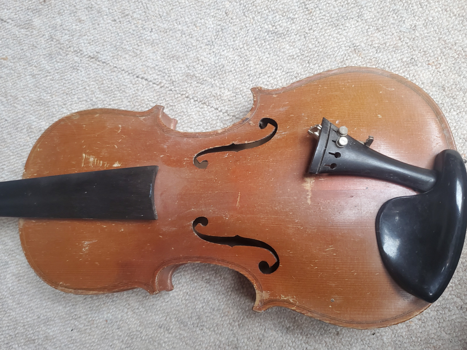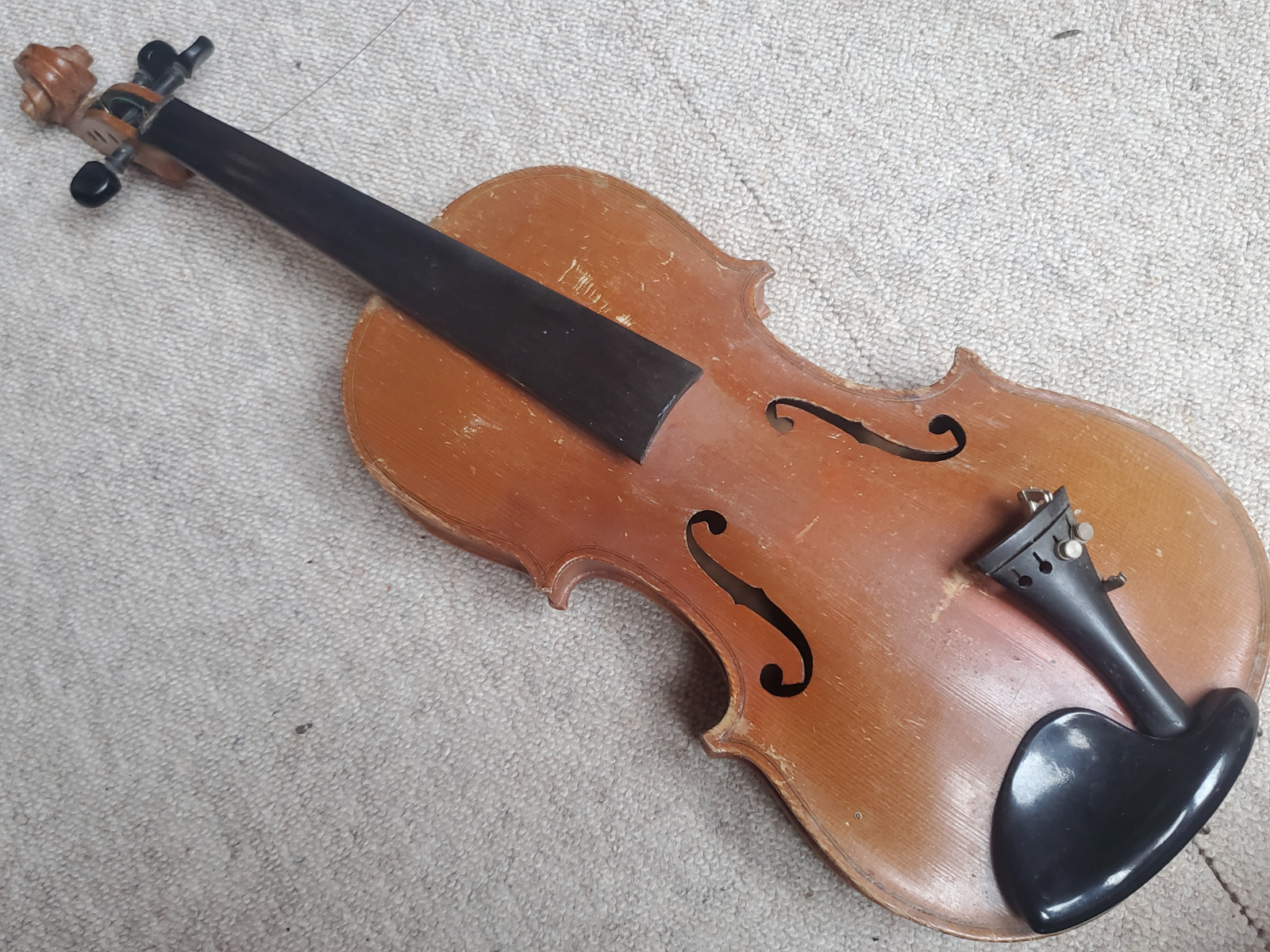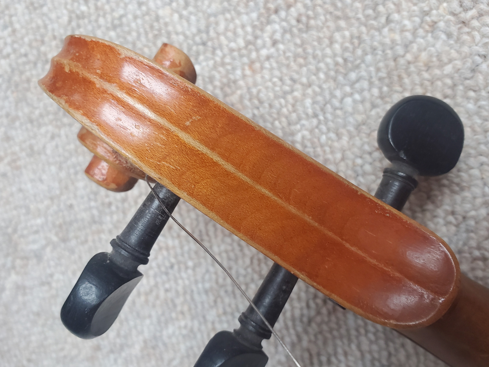 Nicely flamed old 3/4 violin. There is no label inside, but the back of the instrument reads "Stainer" I found no cracks . The length is 55,5cm/ 21 7/8inch. The body is 34cm (13 3/8 inch). Instrument needs cleaning and service. If you have any questions, please ask. Insured shipping to USA or Canada amounts to 59 USD. Please also view my other auctions with instruments. Shipping several violins saves shippingfees.I accept payment via paypal, too. Please see my other auctions with string-, woodwind- and brass instruments.