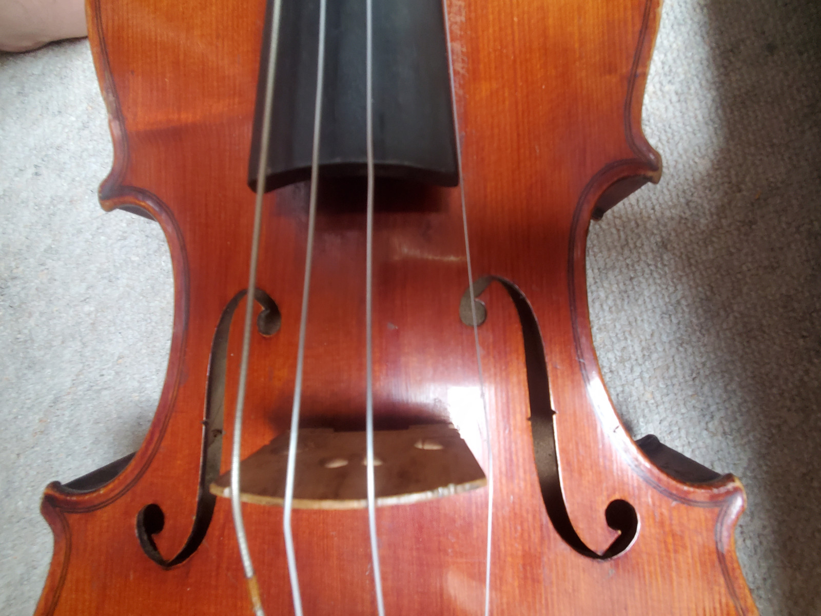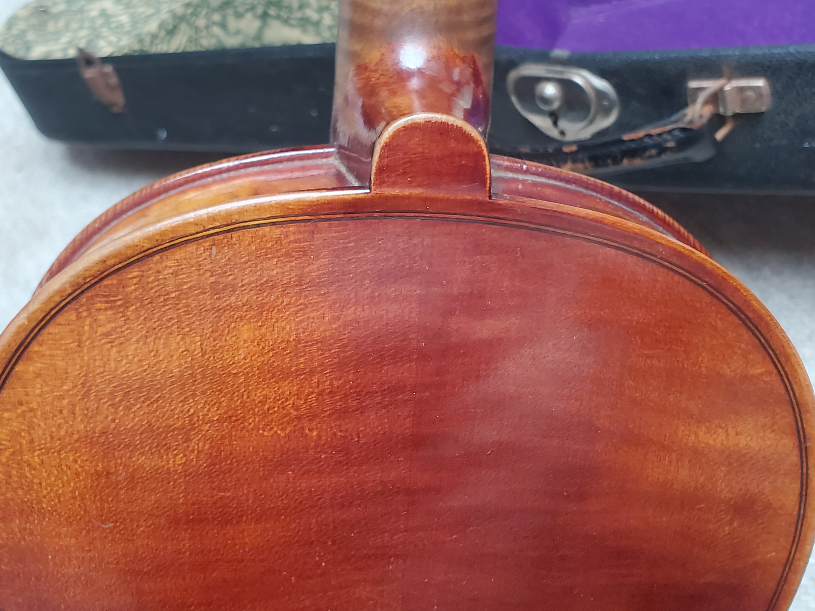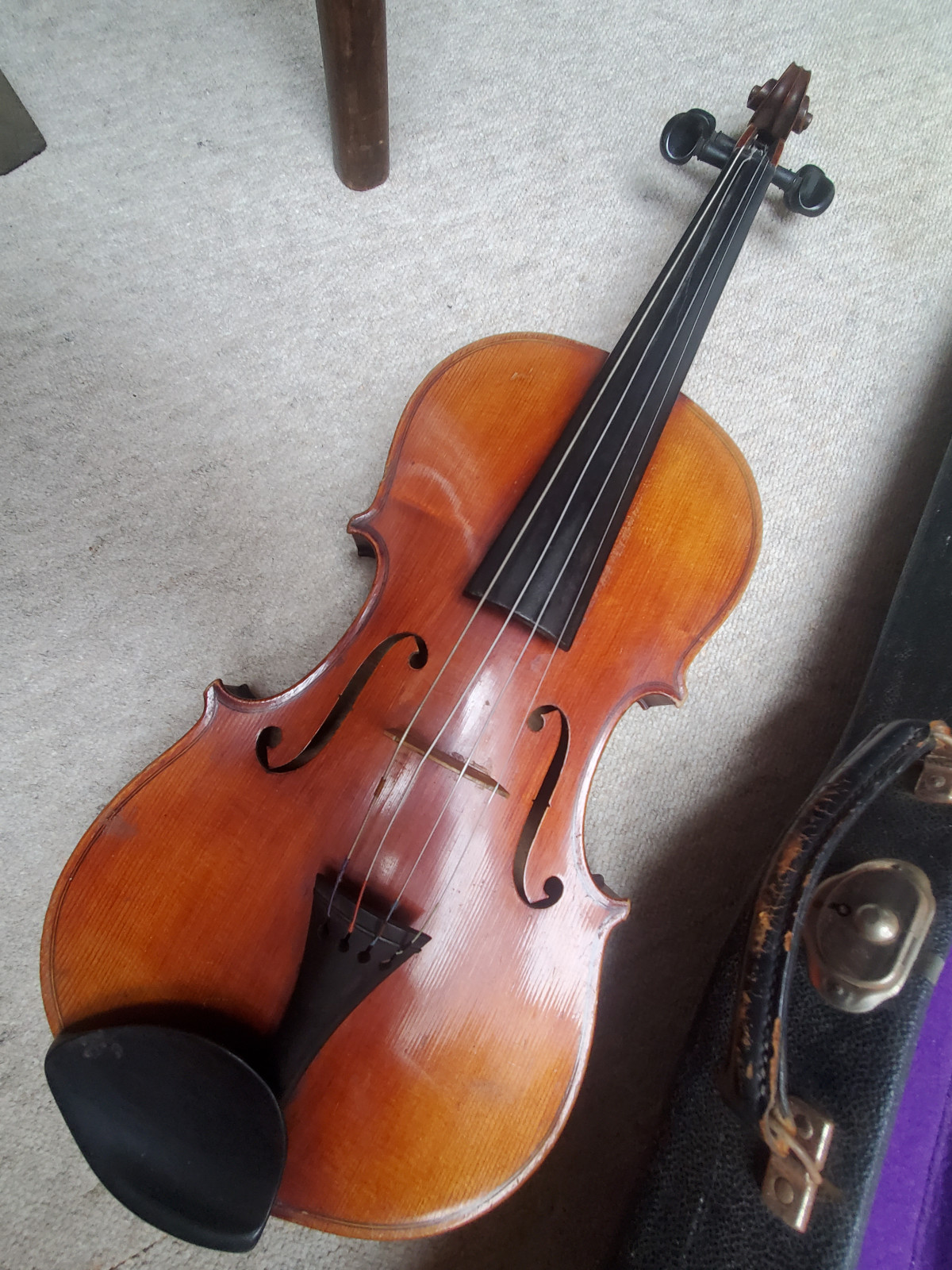 Beautiful old viola with a nicely flamed back. The label inside reads: "Antonius Stradiuarius cremonensis faciebat anno 1762" (The viola is not that old, of course) No cracks, but the front and back are partly a bit loose. (no problem for a repair shop) . So the instrument needs some service and cleaning. The length is 65,5cm/ 25 3/4inch. The body is 39cm (15 3/8inch). Please make sure that you see all the photos UNDER the item describtion! If you have any questions, please ask. Insured shipping to USA or Canada amounts to 75 USD.
