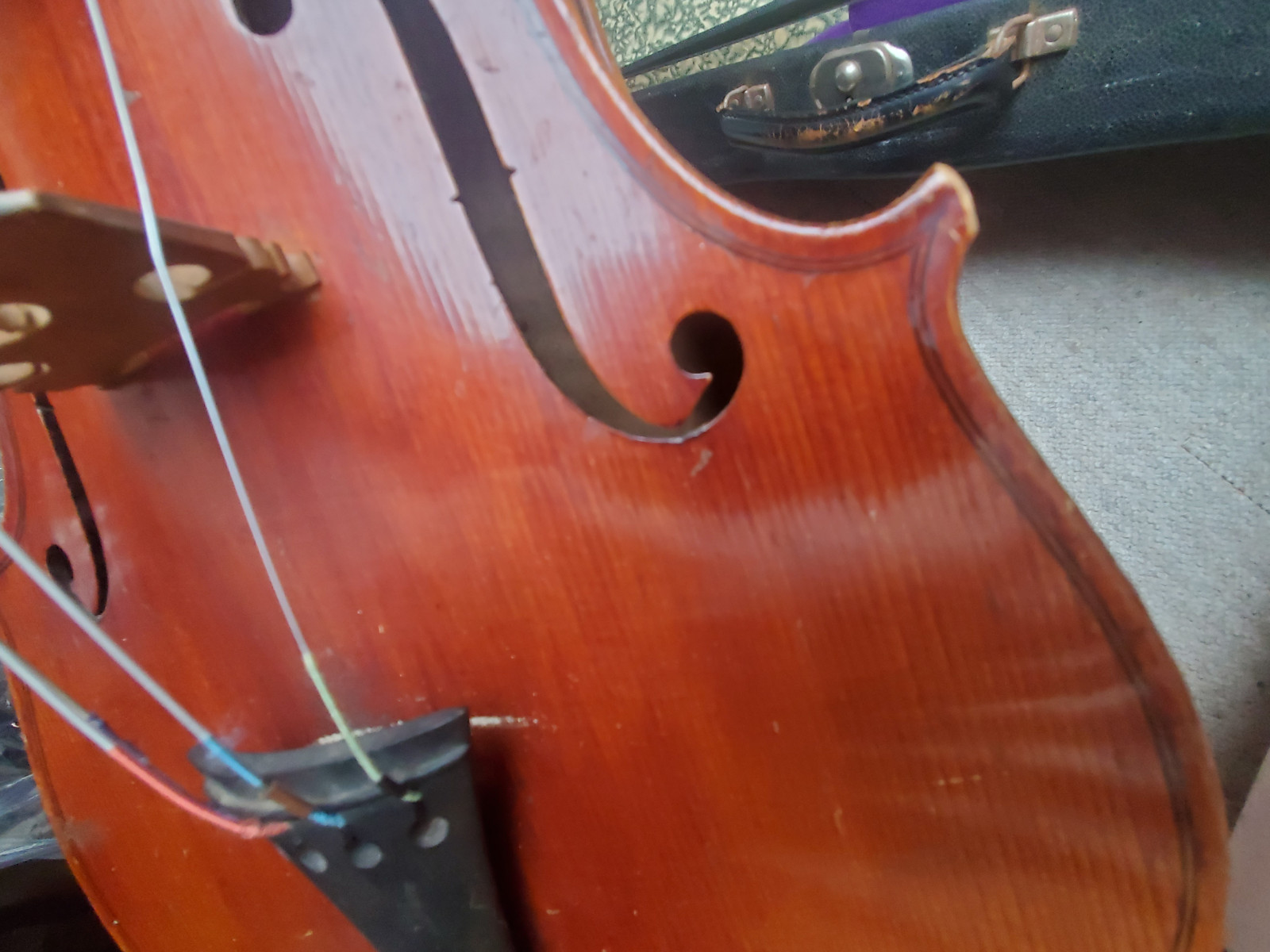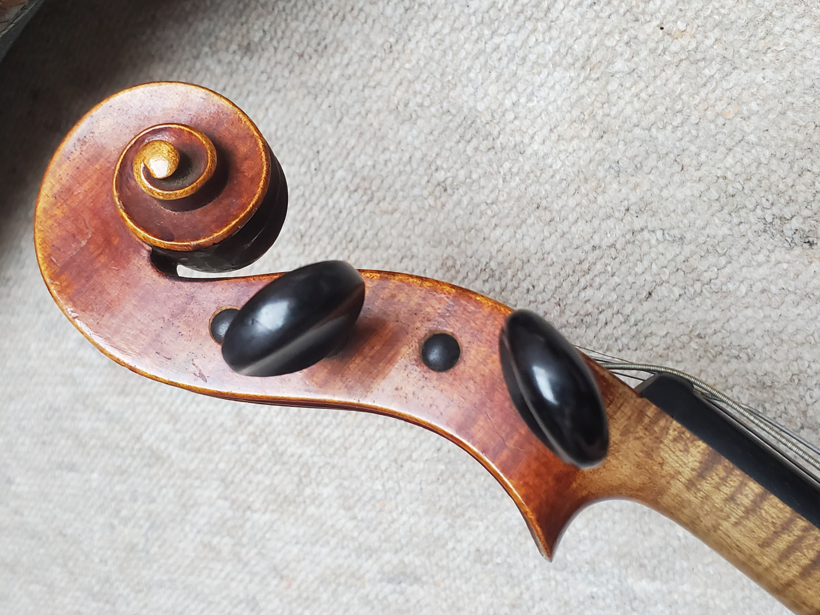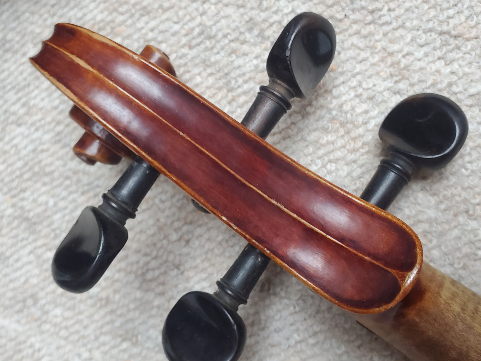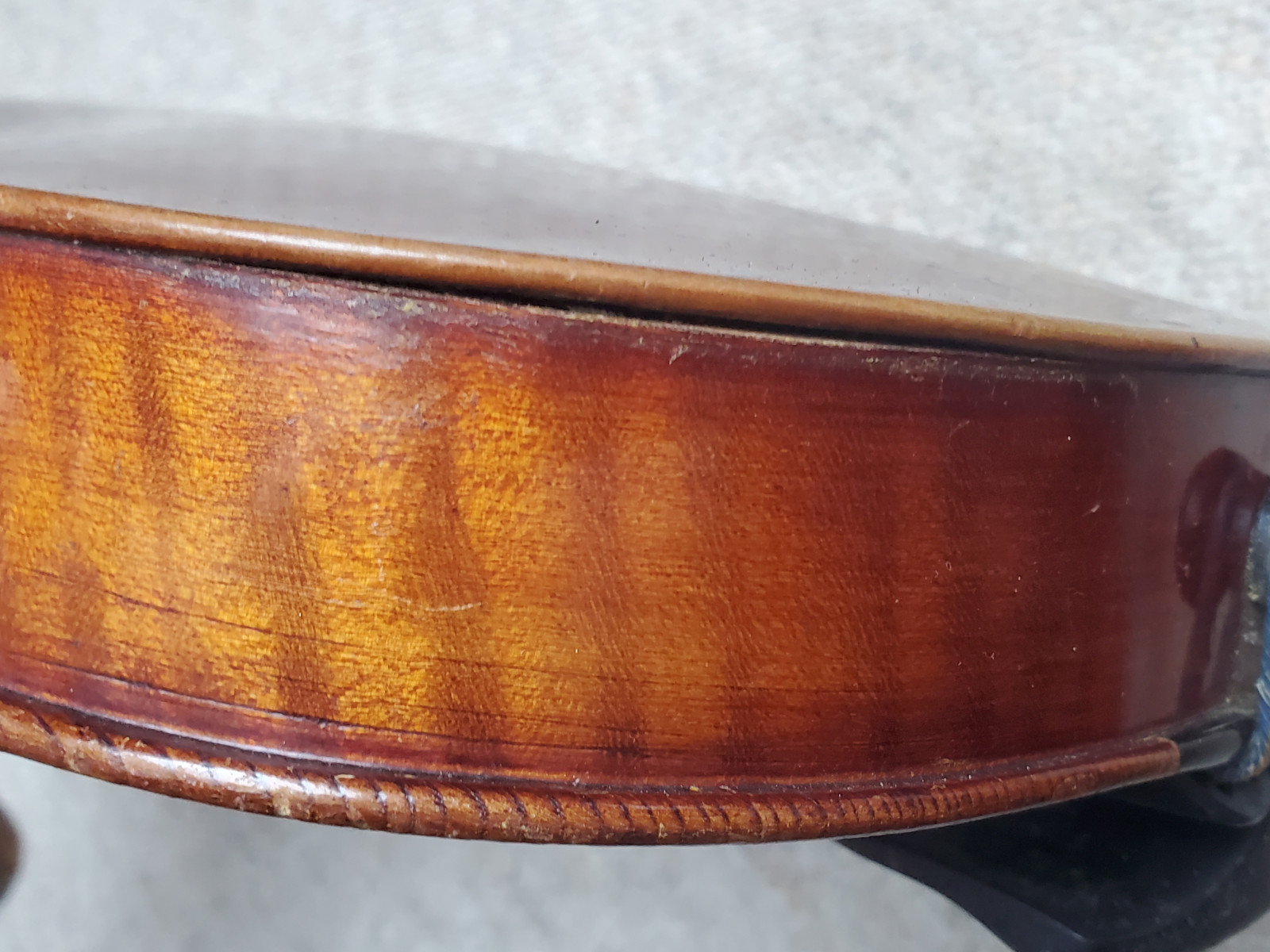 Beautiful old viola with a nicely flamed back. The label inside reads: "Antonius Stradiuarius cremonensis faciebat anno 1762" (The viola is not that old, of course) No cracks, but the front and back are partly a bit loose. (no problem for a repair shop) . So the instrument needs some service and cleaning. The length is 65,5cm/ 25 3/4inch. The body is 39cm (15 3/8inch). Please make sure that you see all the photos UNDER the item describtion! If you have any questions, please ask. Insured shipping to USA or Canada amounts to 75 USD.