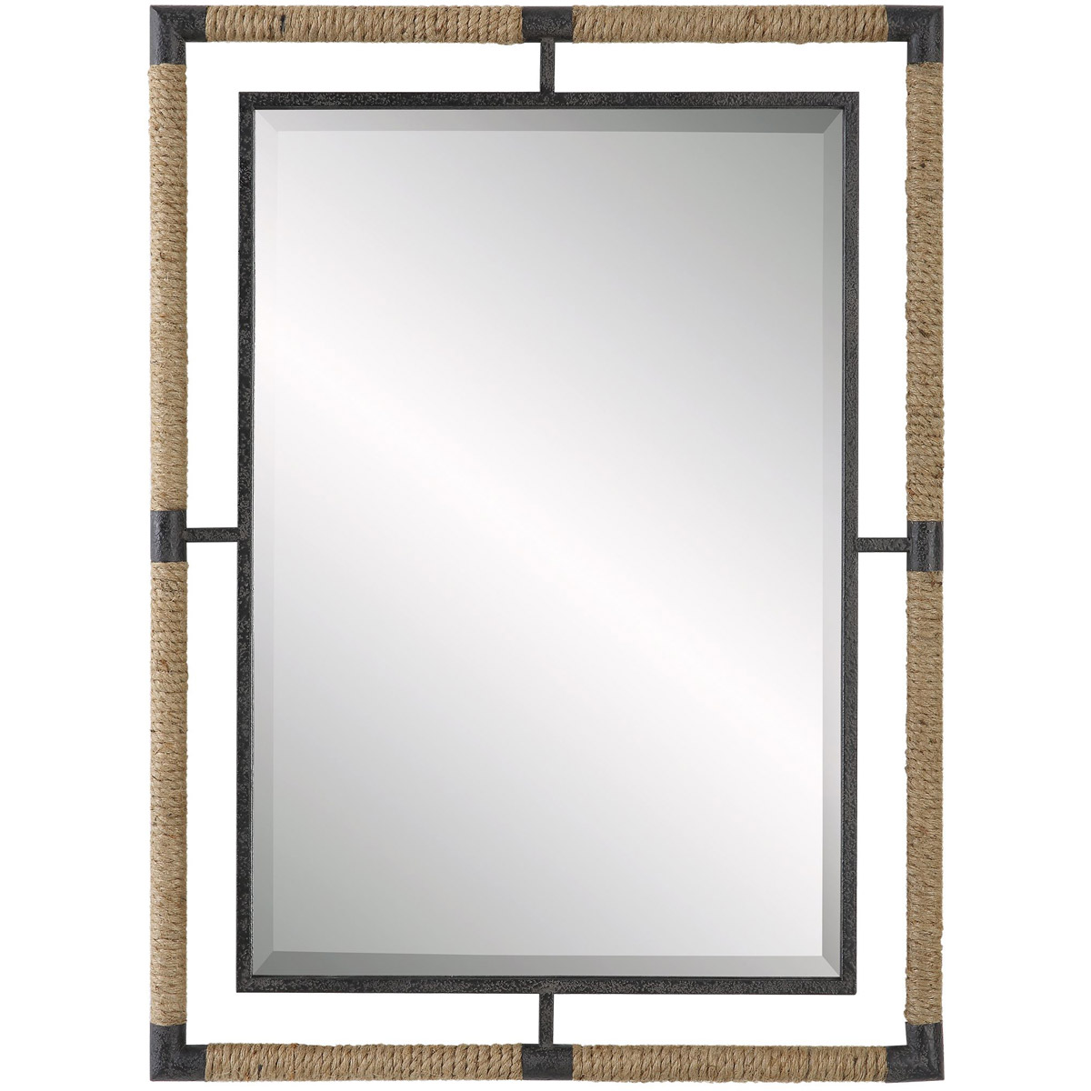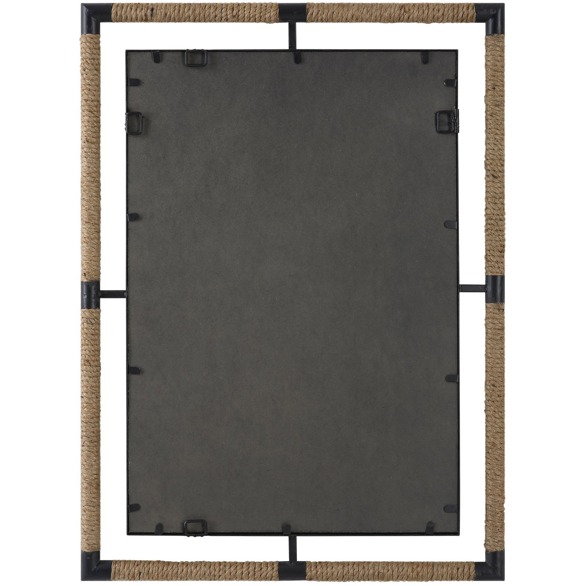 This Forged Iron Mirror Frame Is Finished In A Textured Rust Black That Is Wrapped In Natural Rope Bringing A Coastal Feel To Any Room. The Mirror Is Surrounded By A Generous 1 1/4" Bevel. May Be Hung Horizontal Or Vertical.