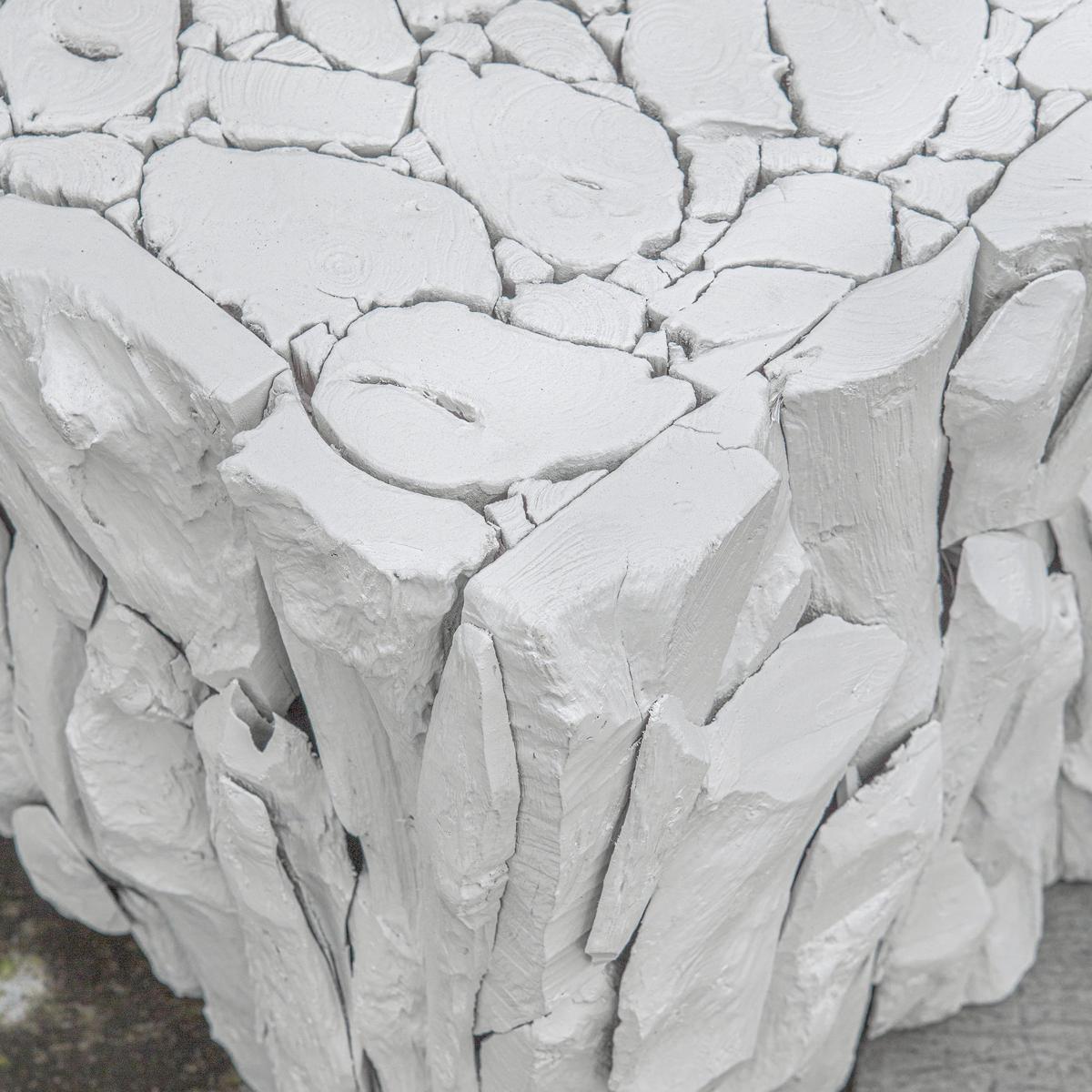 Whitewashed Teak Wood Skillfully Pieced Together Into An Artistic And Precise Sculpture With A Smoothly Sanded Top And Open Bottom, Multiplying Its Use As A Table, Seat, Or Box Planter.