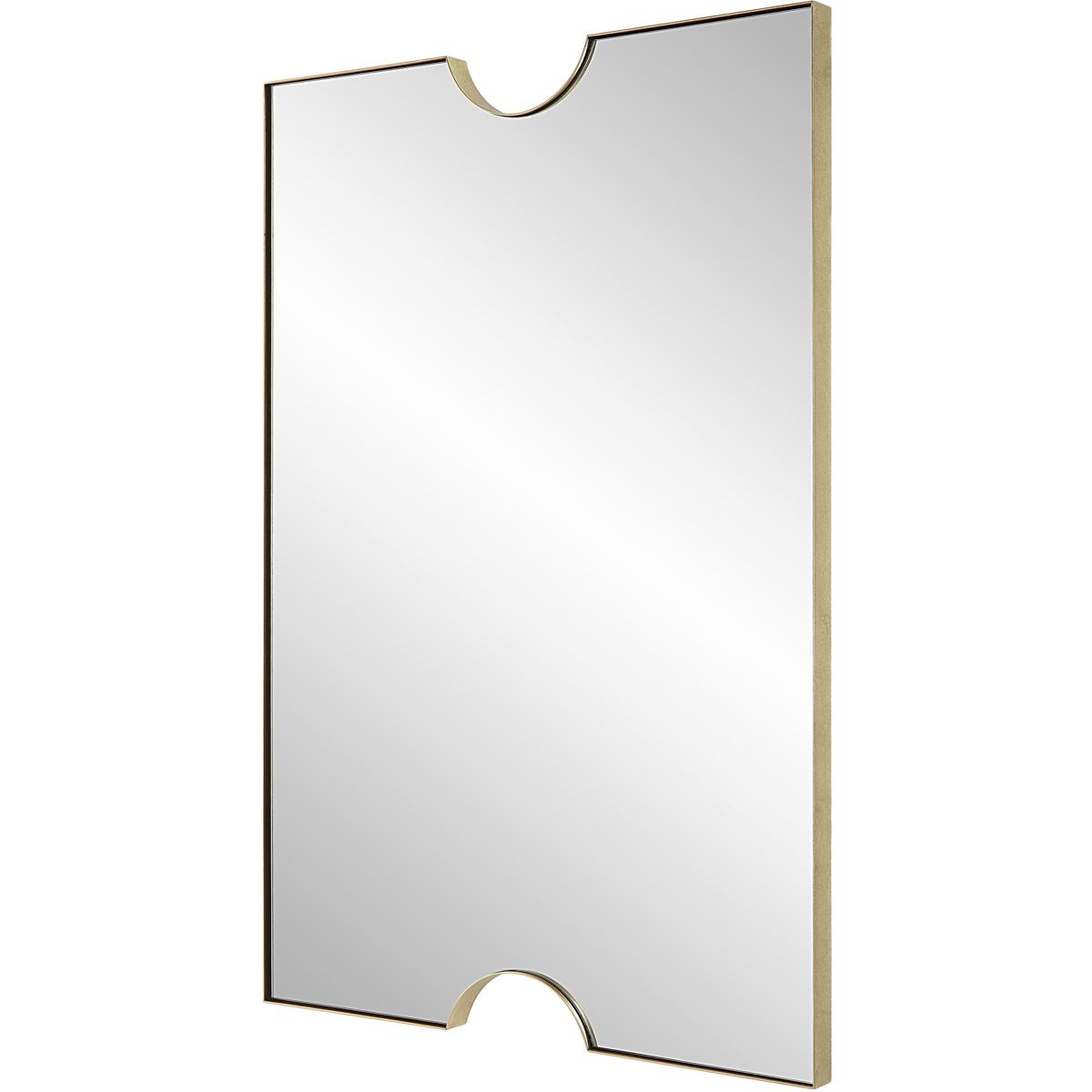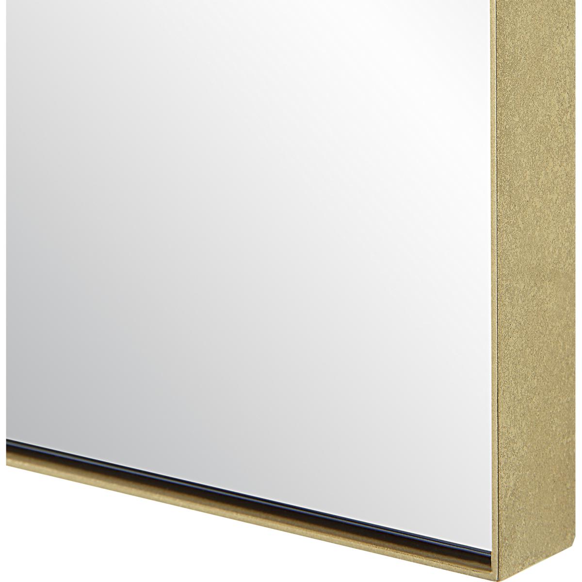 The Ticket Vanity Mirror Features A Metallic Gold Leaf Finish On An Iron Frame That Surrounds A Floating Polished Edge Mirror. May Be Hung Horizontal Or Vertical.