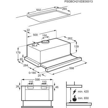 - Höhe des Produkts; ohne Kamin: 179 mm