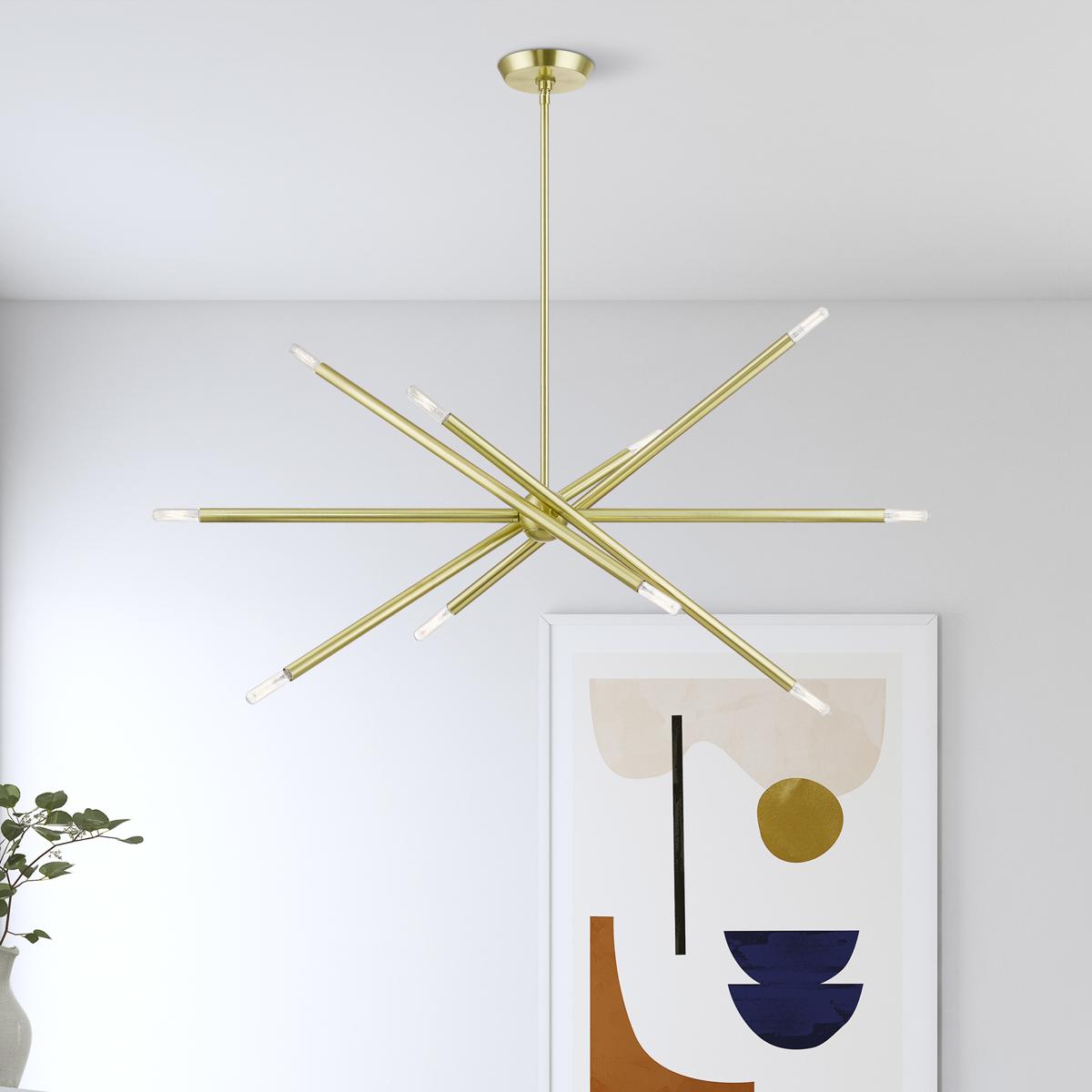 10 Light Satin Brass Linear Chandelier