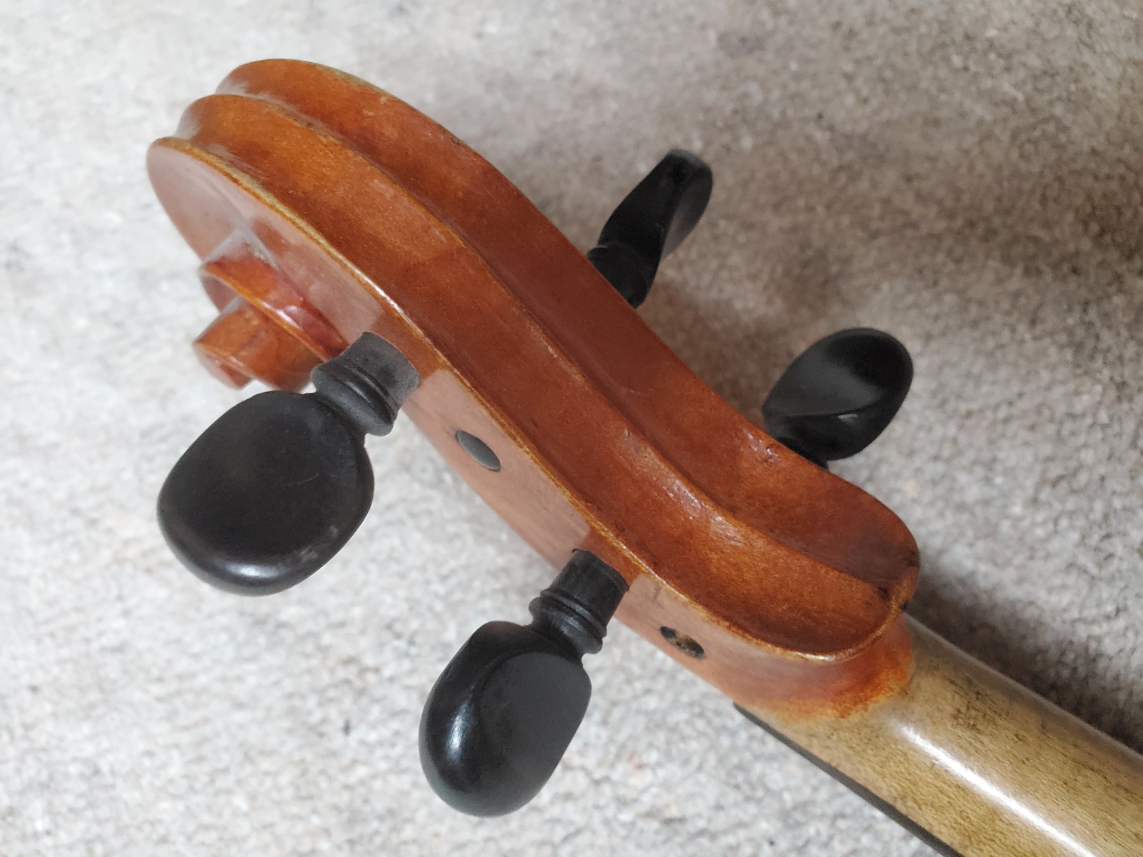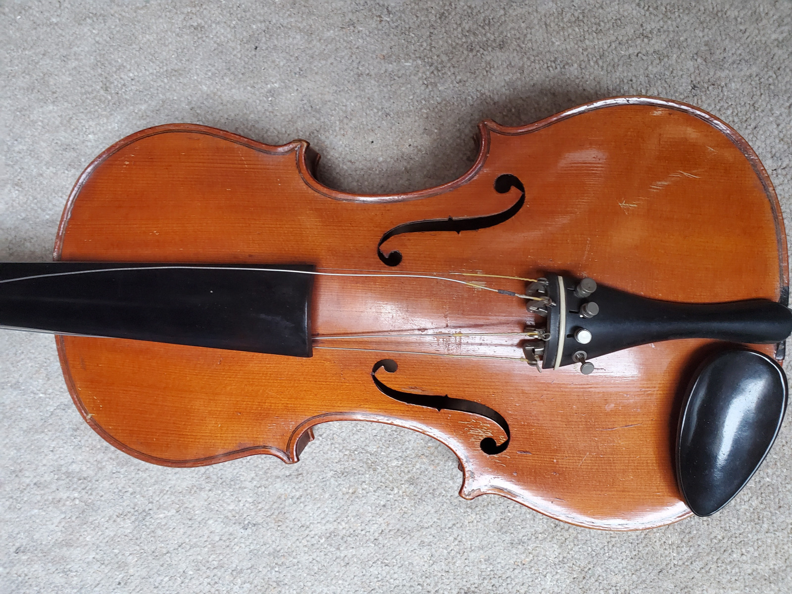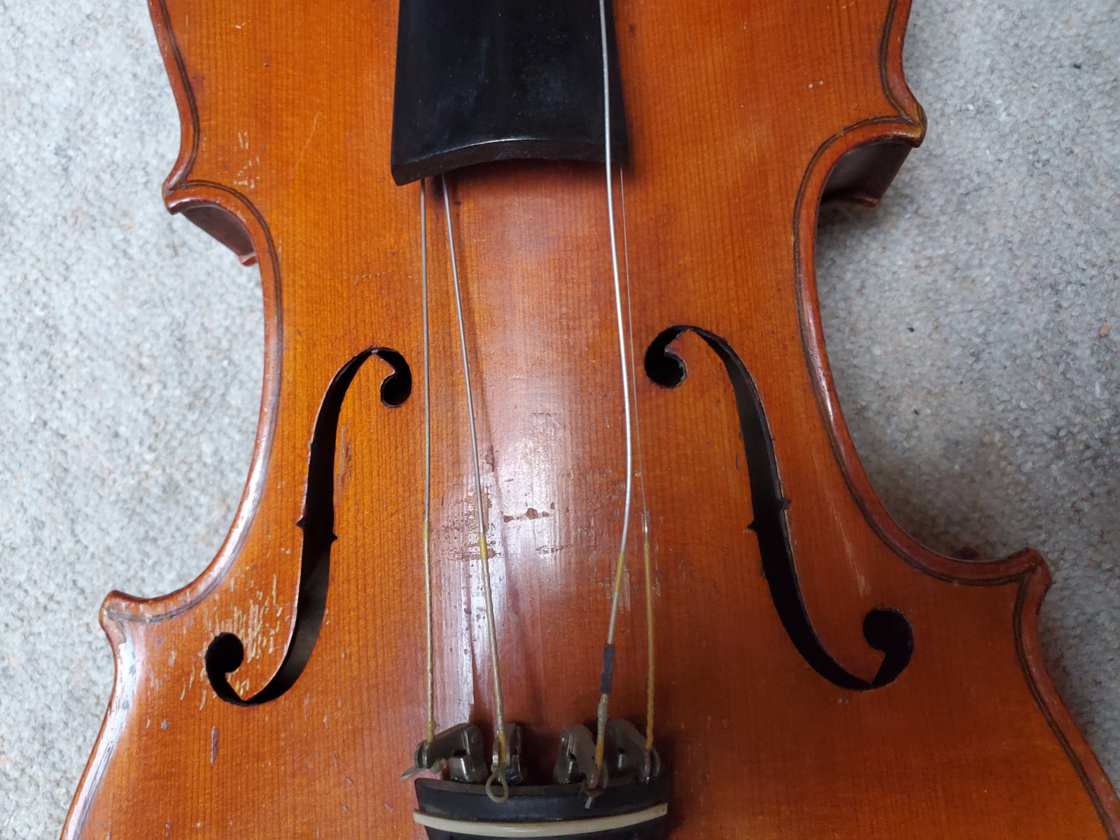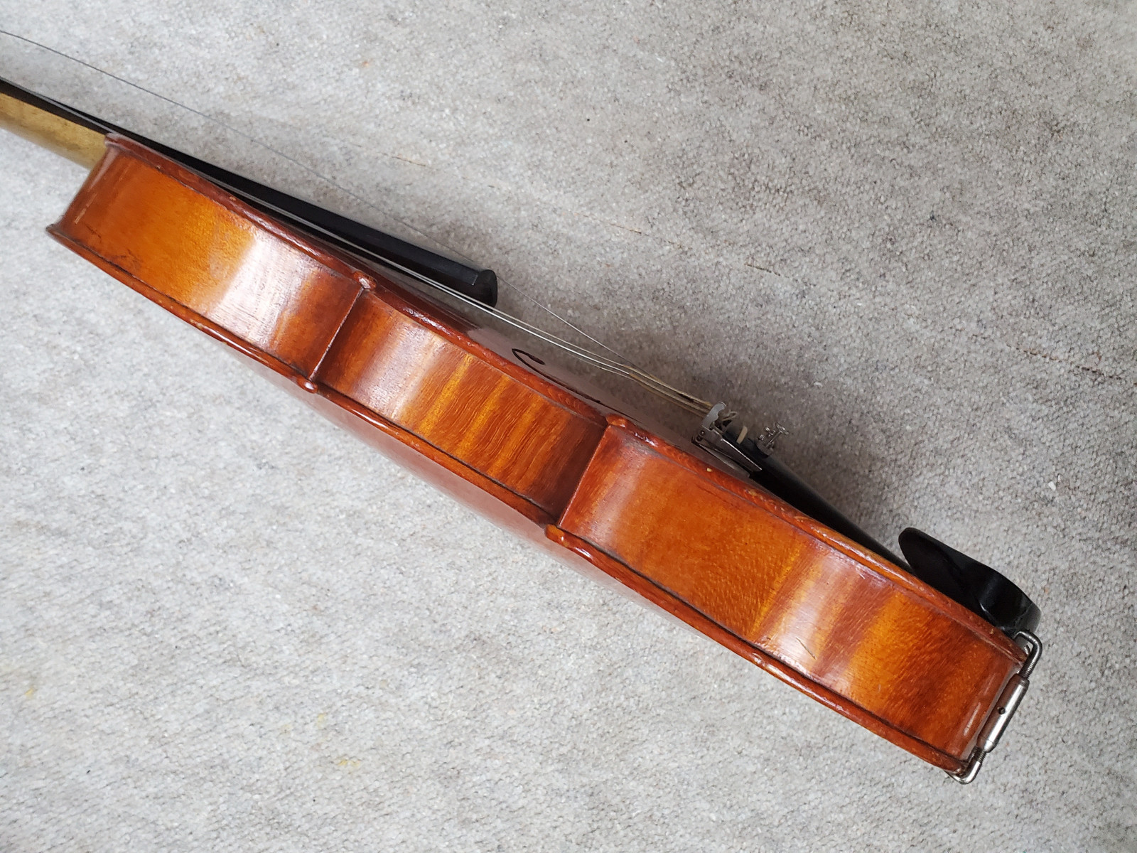 It is in nice used condition. No cracks. Please make sure that you see all the Photos! The length of the violin is 58,7 cm/ 23 1/8 inch. The body is 35,5cm (14 inch). Instrument needs some cleaning and service. If you have any questions, please ask. Insured shipping to USA or Canada amounts to 59 USD. I will ship worldwide. Please also view my other auctions with instruments. Shipping several violins saves shippingfees. Please see my other auctions with string-, woodwind- and brass instruments.