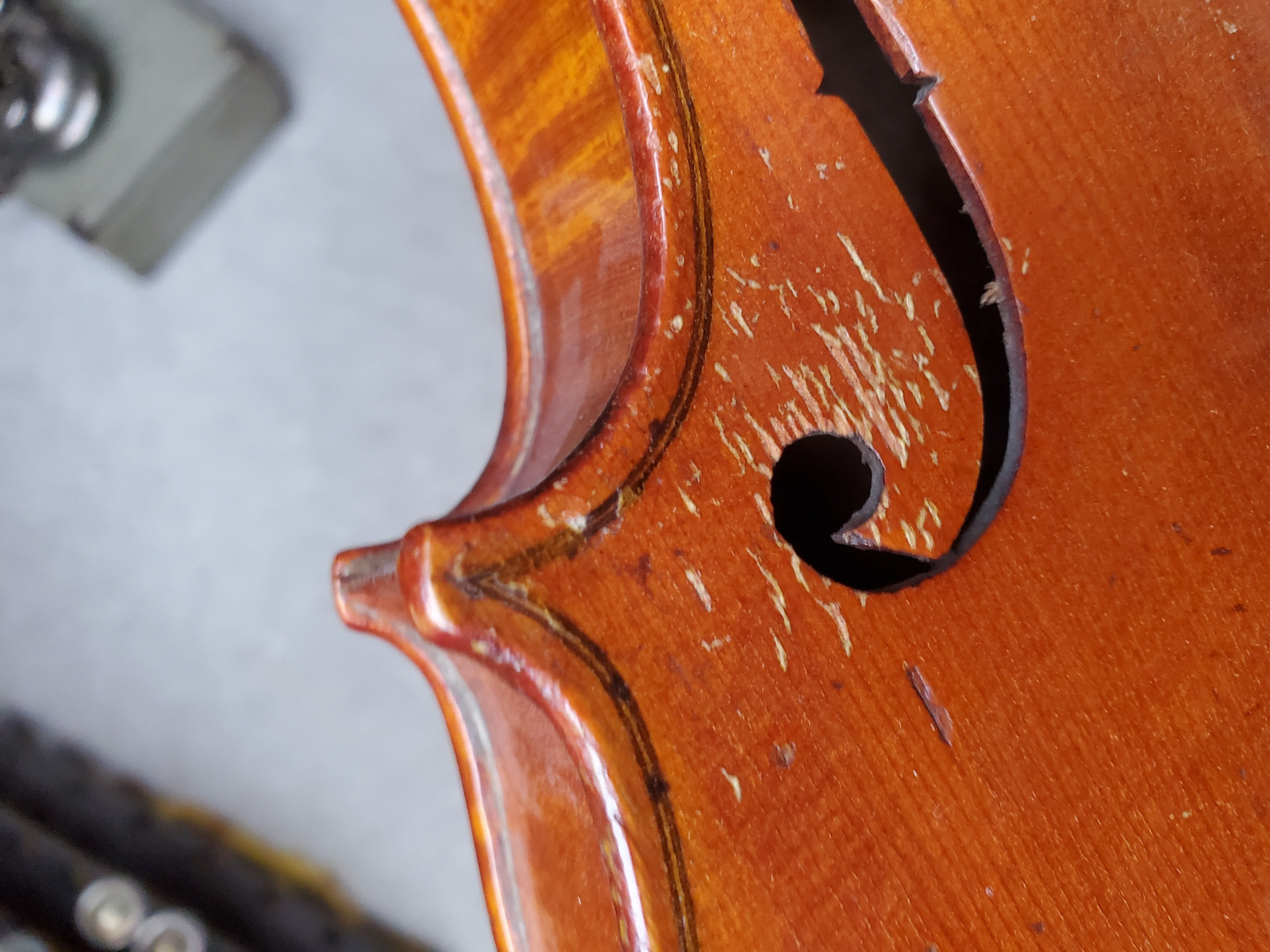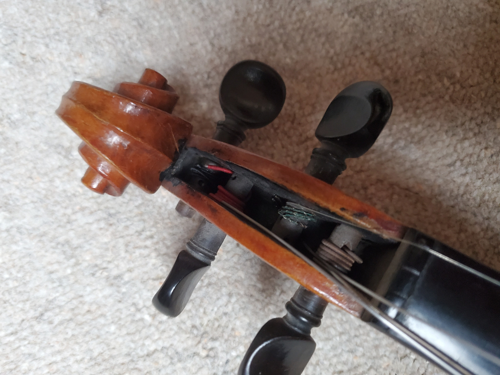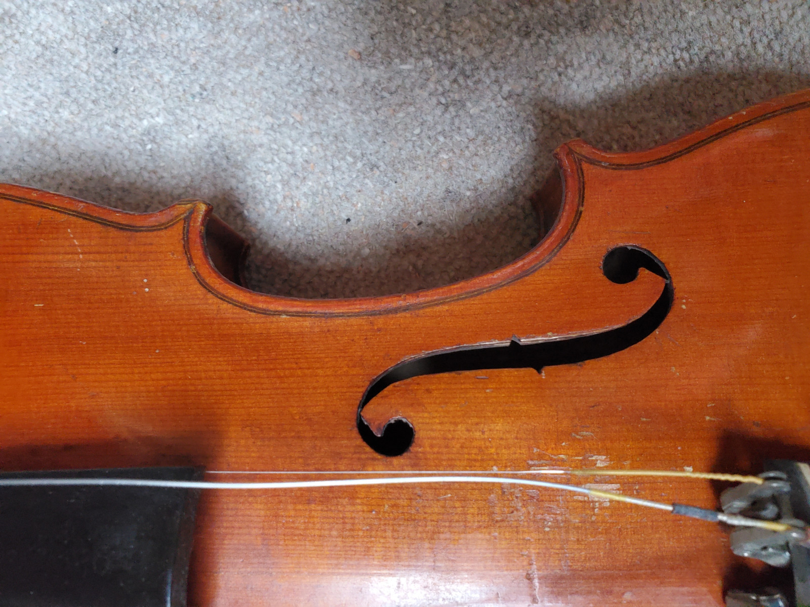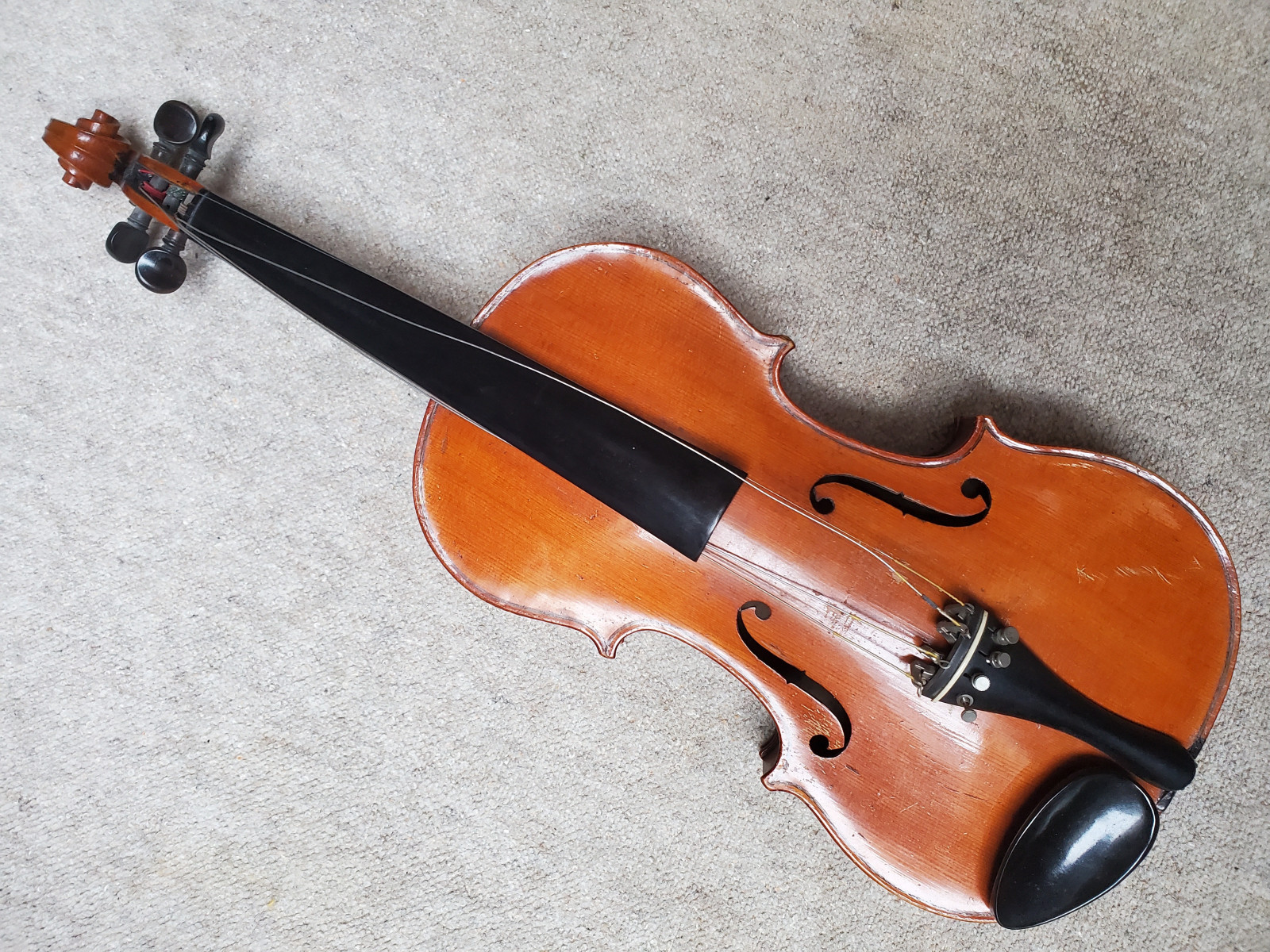 It is in nice used condition. No cracks. Please make sure that you see all the Photos! The length of the violin is 58,7 cm/ 23 1/8 inch. The body is 35,5cm (14 inch). Instrument needs some cleaning and service. If you have any questions, please ask. Insured shipping to USA or Canada amounts to 59 USD. I will ship worldwide. Please also view my other auctions with instruments. Shipping several violins saves shippingfees. Please see my other auctions with string-, woodwind- and brass instruments.