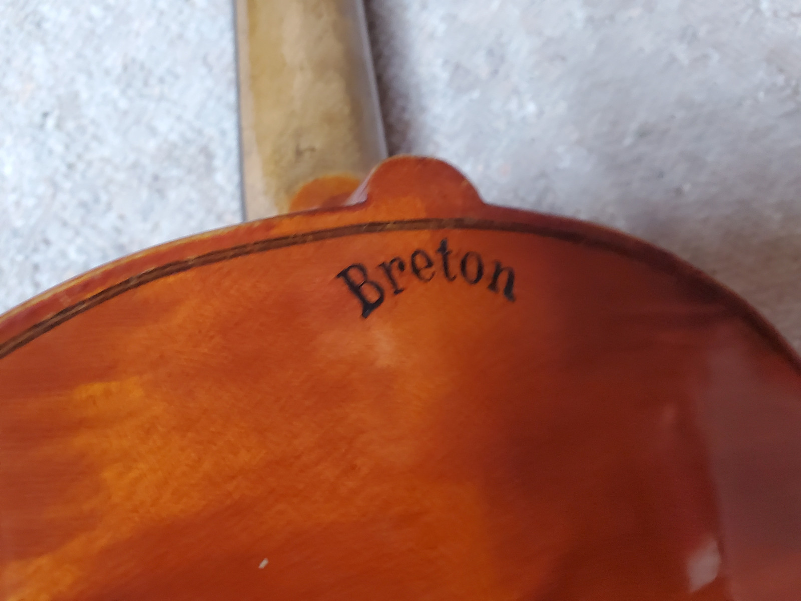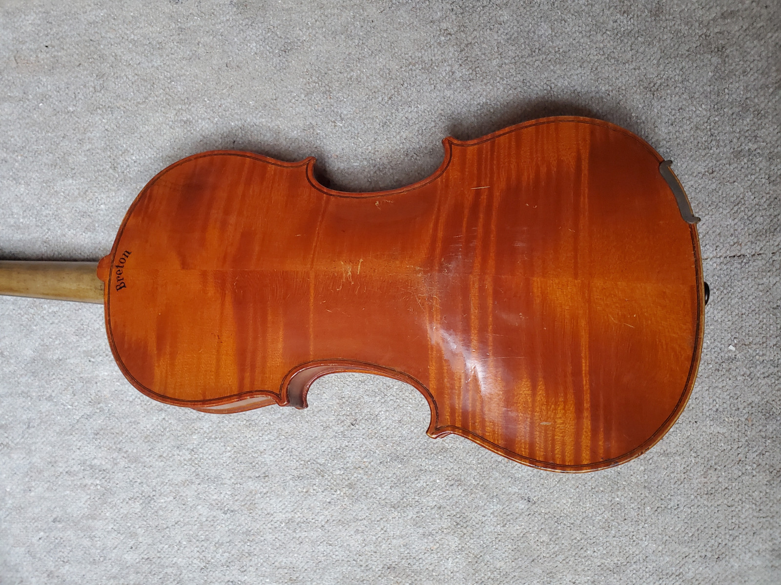 Nice and old 4/4 violin The branding at the nicely flamed back reads "Breton"