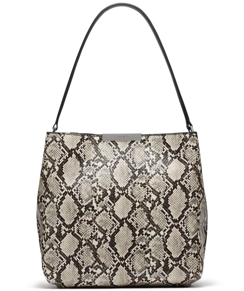 Calvin Klein Jodi Triple Compartment Bucket, Black Multi Snake, One Size