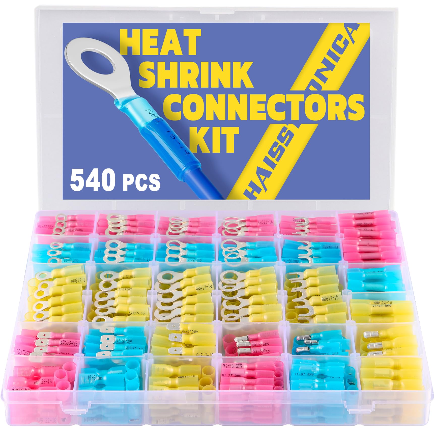 Good Quality Marine Grade Wire Termination:The Haisstronica heat shrink connectors kit includes ring,fork,spade,bullet and heat shrink butt connectors.The right quality wire connectors,for the right job,are always worth expense