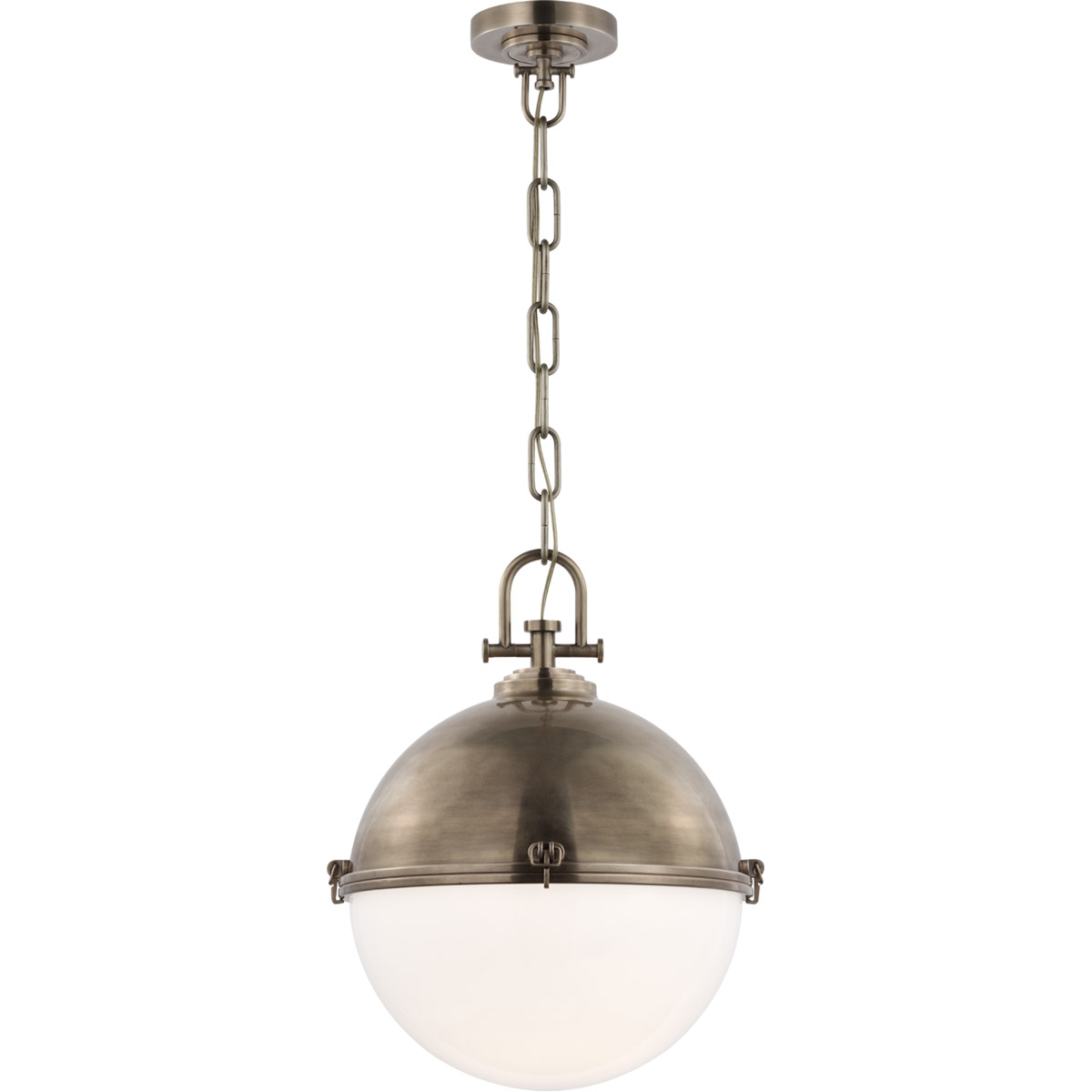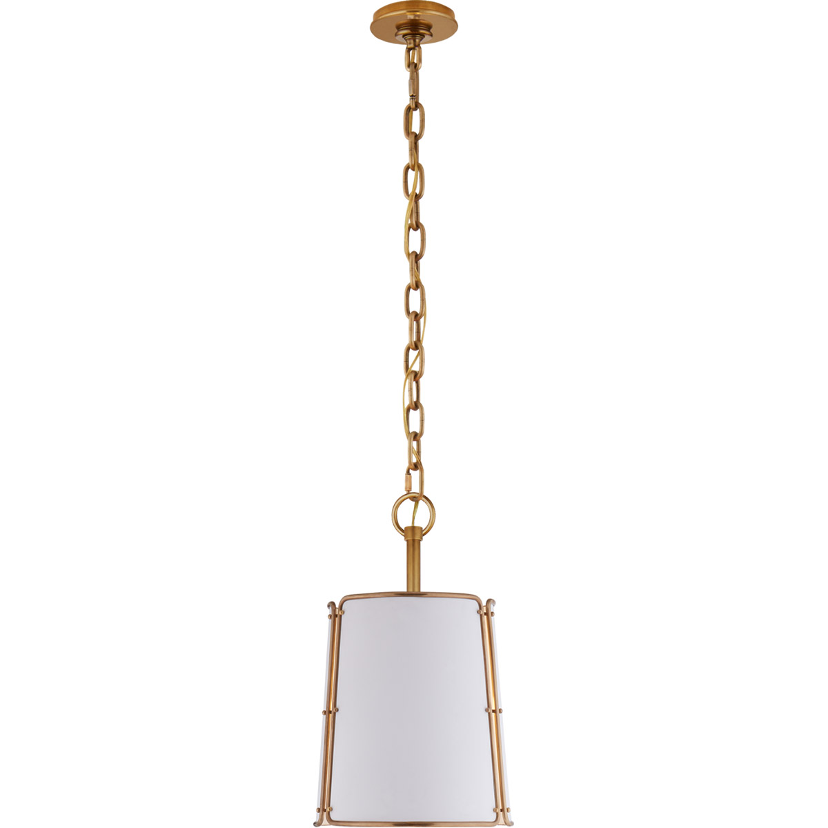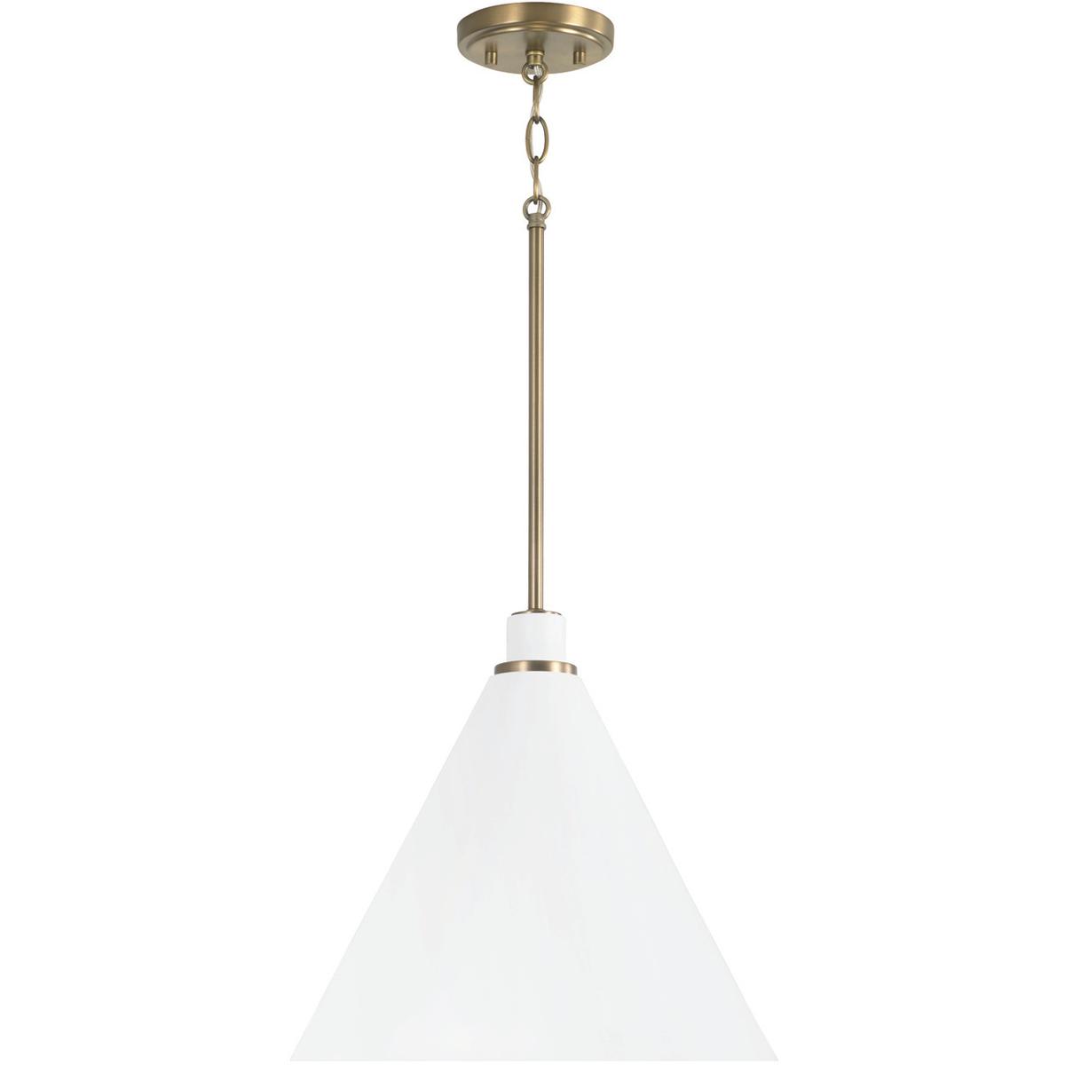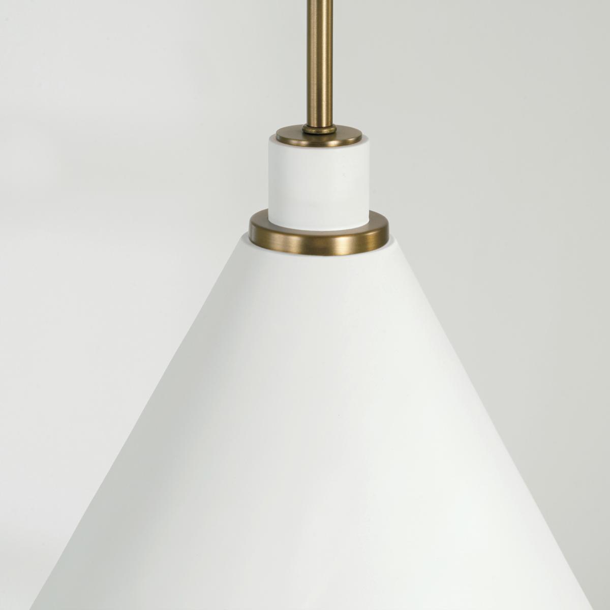 Bring a bold, modern look to traditional lighting with the Bradley Pendant. The Aged Brass accents and crisp metal shade bring distinct style, while the Matte White exterior and White interior shade finishes create down-light illumination that is perfect for focused task lighting.