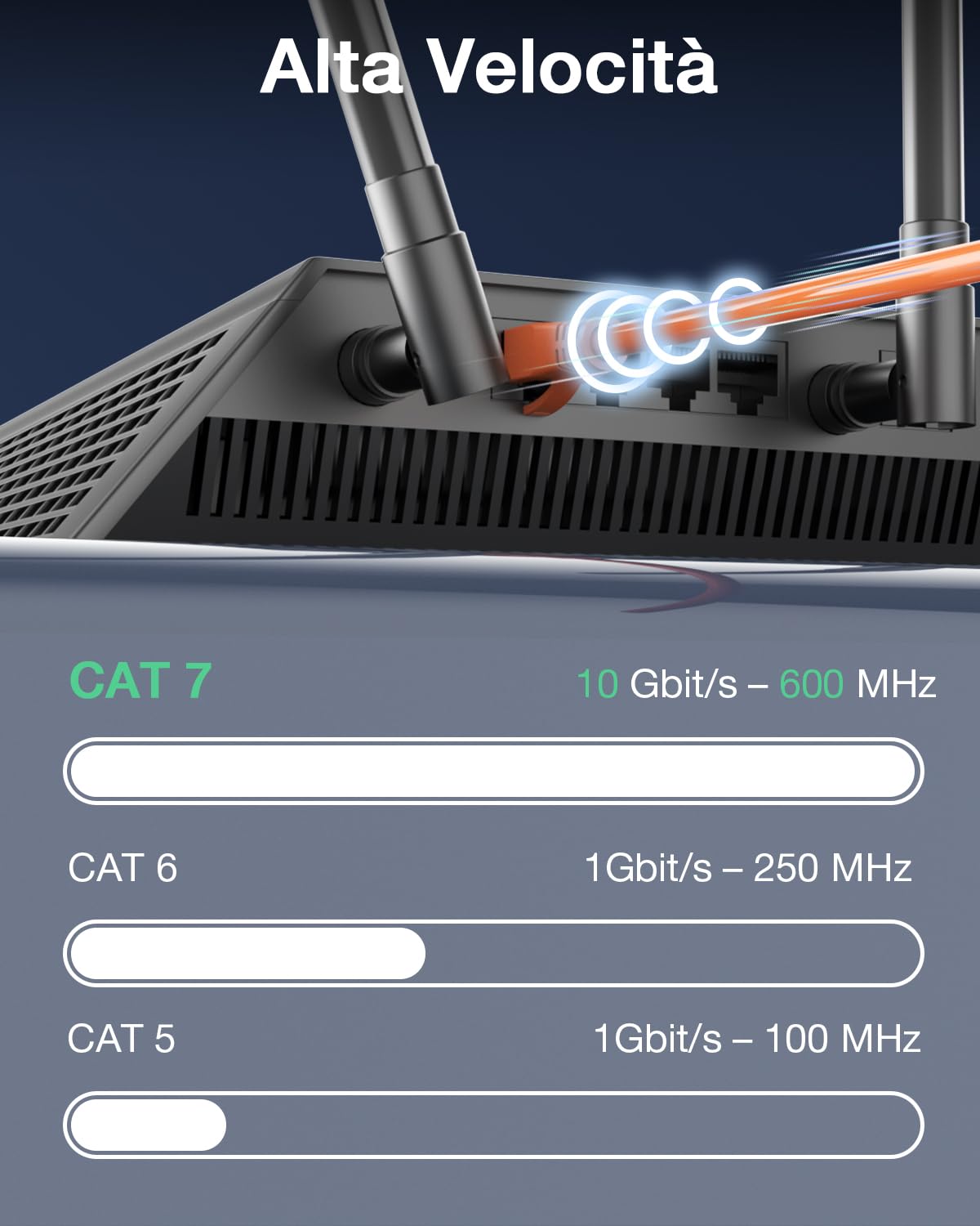 MATERIALE: Connettore RJ45 Cat7 Schermato, alloggiamento schermato: lega di rame. Piastra di contatto: lega di rame, spessore della doratura: 3u, riduce le interferenze del segnale, materiale robusto per un facile inserimento e scollegamento, aumenta la qualità del trasferimento del segnale