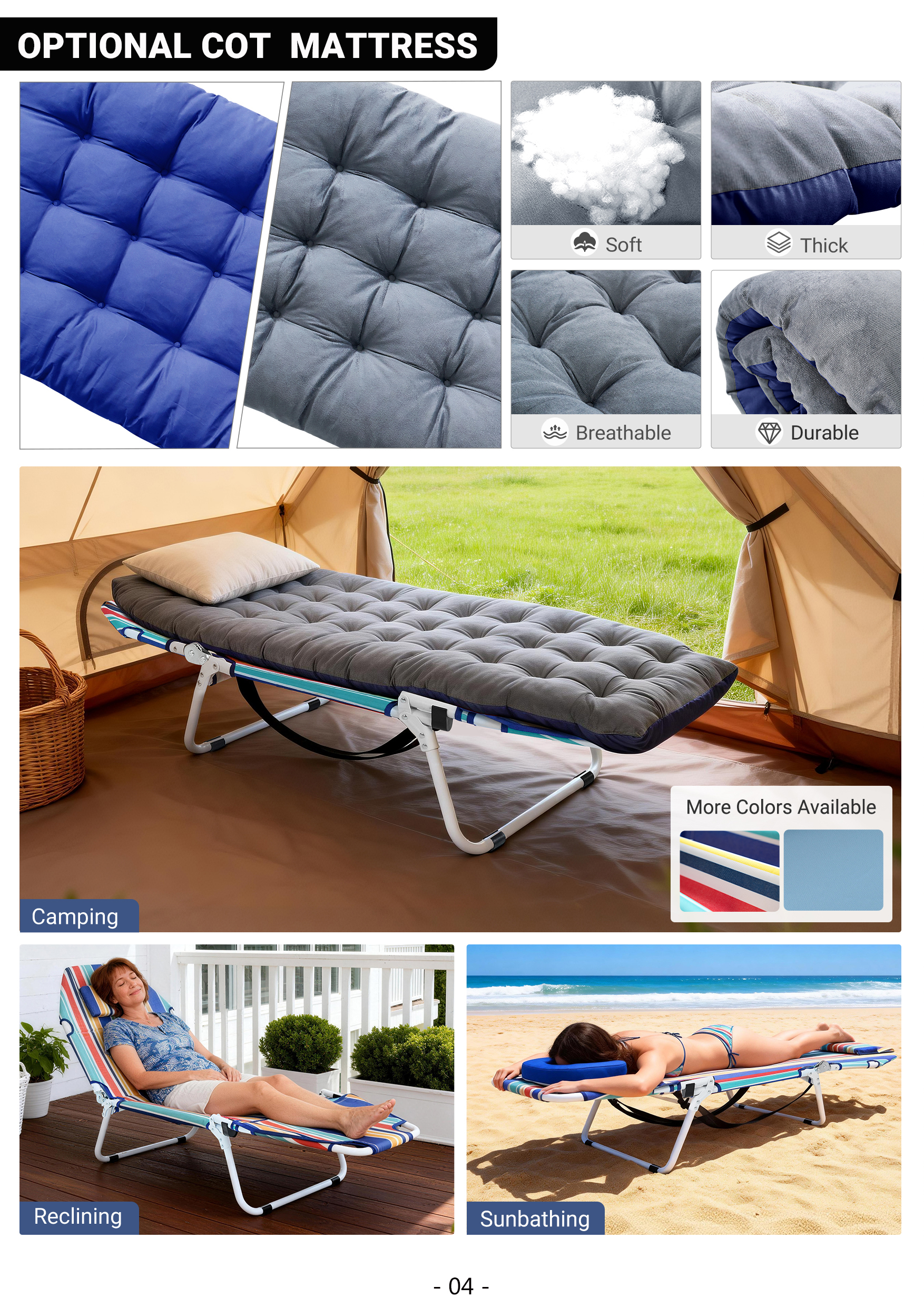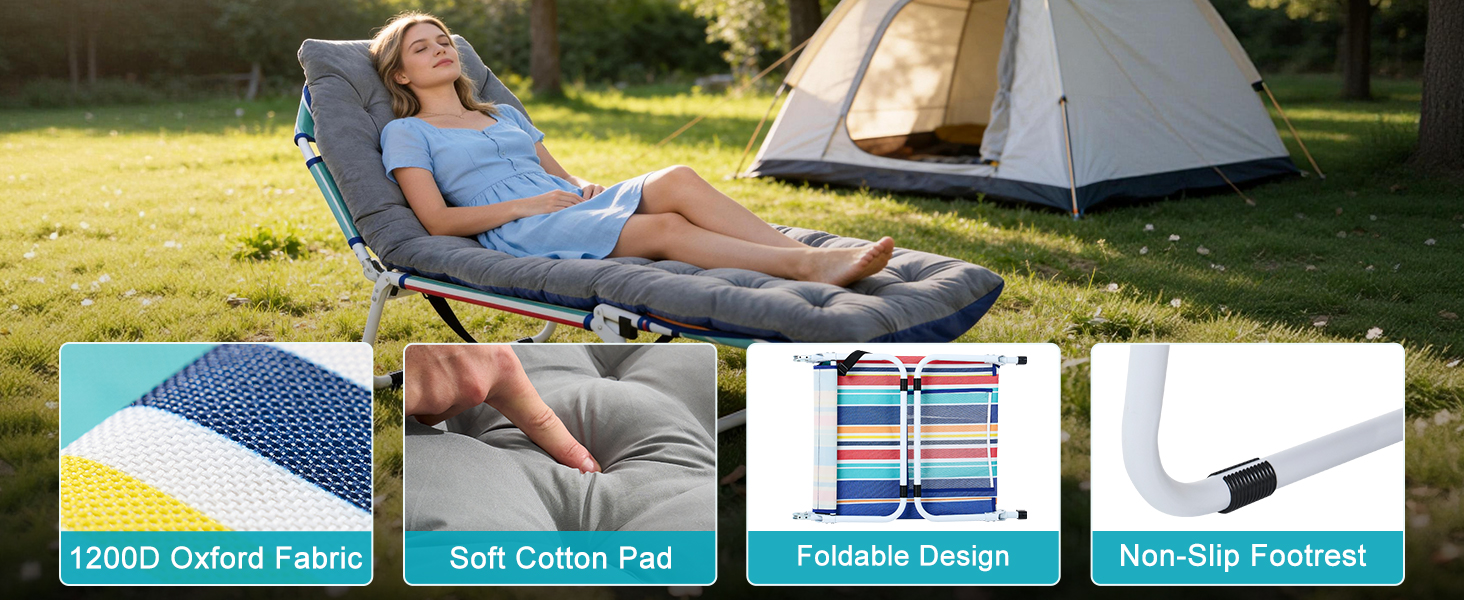 【COMFORT PAD】Comes with soft pad and detachable pillow for a more comfortable sleep on this portable folding recliner; Don't hesitate to place your order