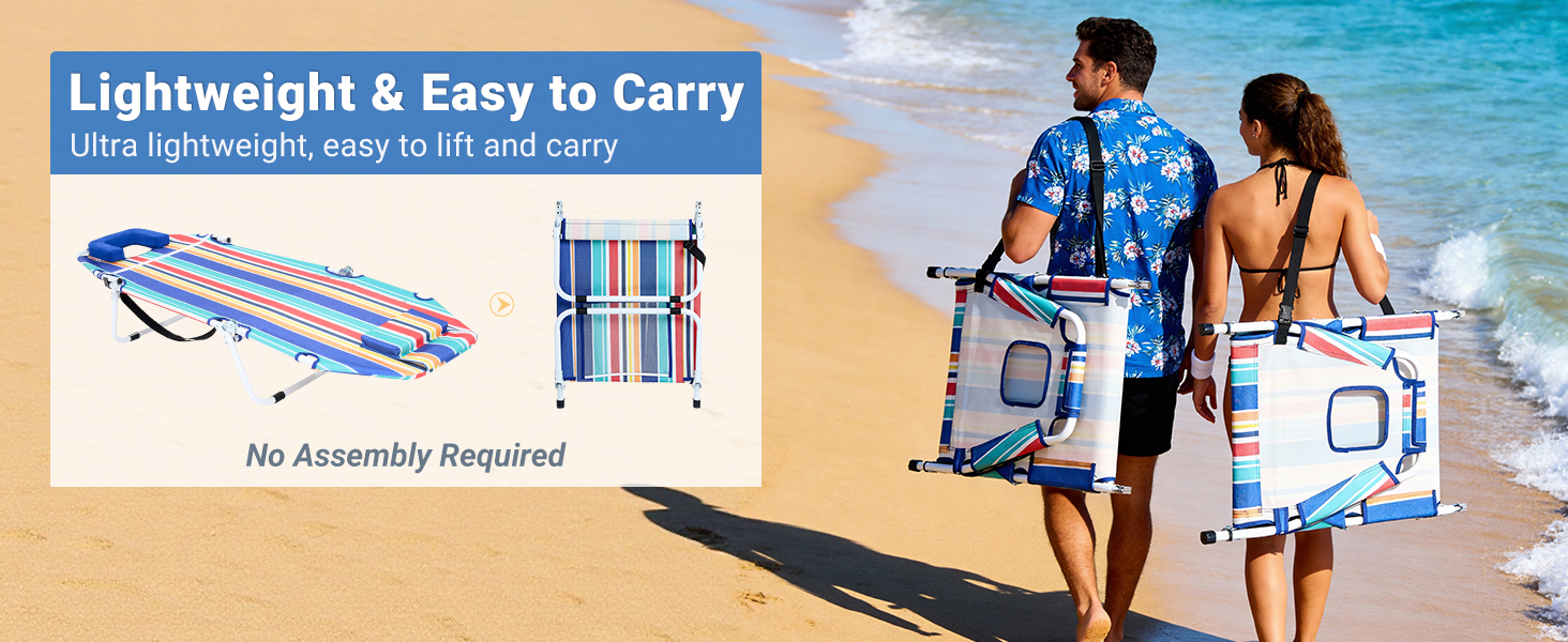 【NO ASSEMBLY & EASY TO CARRY】No assembly required—ready to use right out of the box. The folding design allows for quick setup and compact storage in seconds. Equipped with both shoulder straps and carry handles, it’s easy to transport to the beach, poolside, lawn, patio, balcony, or camping trips