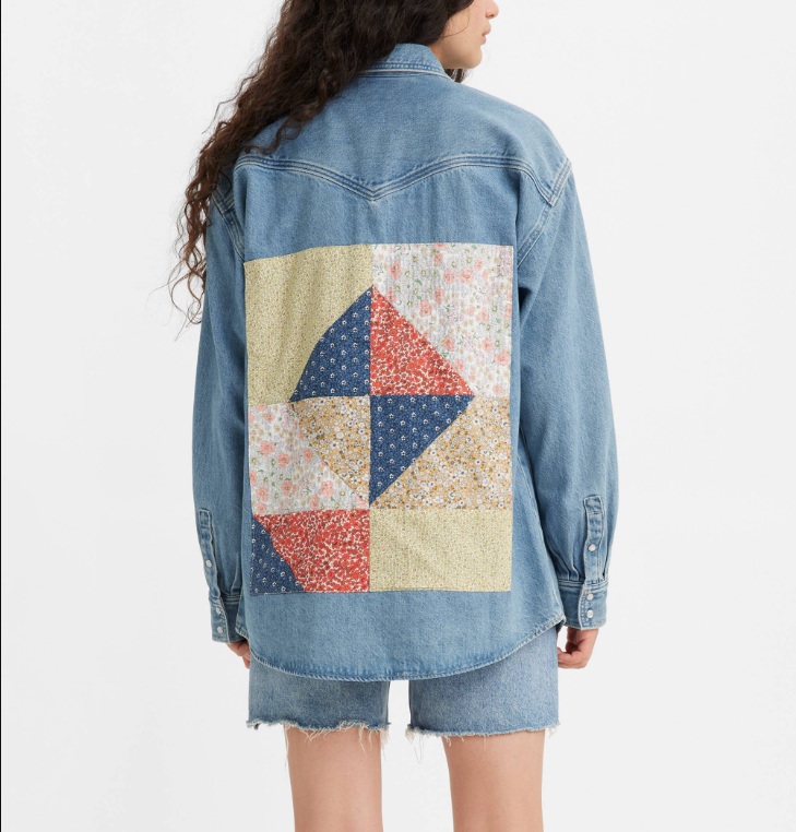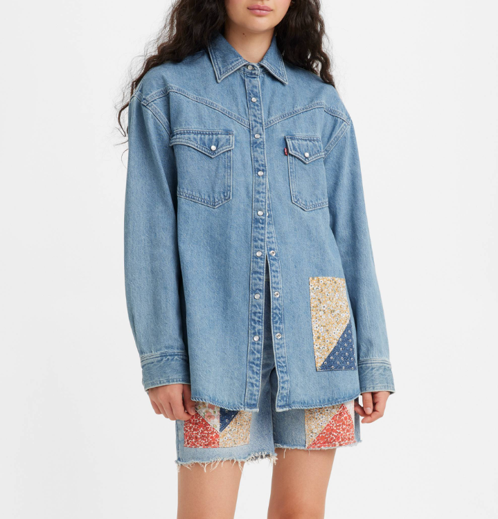 Levi's Women's Blue Patchwork Oversized Cotton Western Shirt Size M A33640008