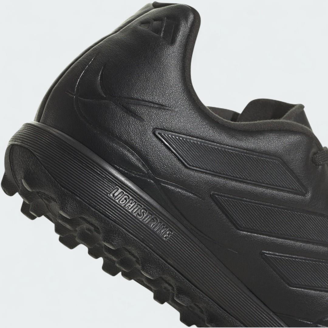 Las botas de fútbol Adidas Copa Pure.3 Turf están diseñadas para jugadores que valoran un toque puro y limpio y un estilo clásico. Estas botas negras con detalles en blanco cuentan con una parte superior sintética suave que se siente como cuero natural, lo que te brinda un excelente control del balón. La suela de goma específica para césped proporciona un agarre confiable y estabilidad en césped artificial, para que puedas concentrarte completamente en tu juego.