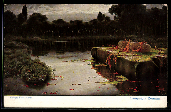 Künstler-AK sign. Enrique Serra: Ruinen im Wasser