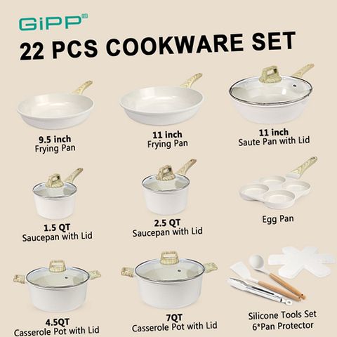 Upgrade your kitchen with the versatile GIPP 22-piece ceramic cookware set today and enjoy effortless cooking every day.