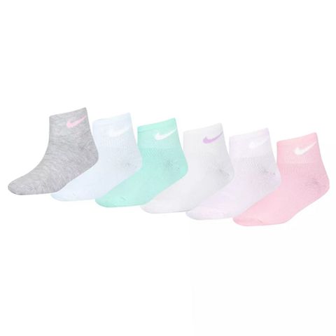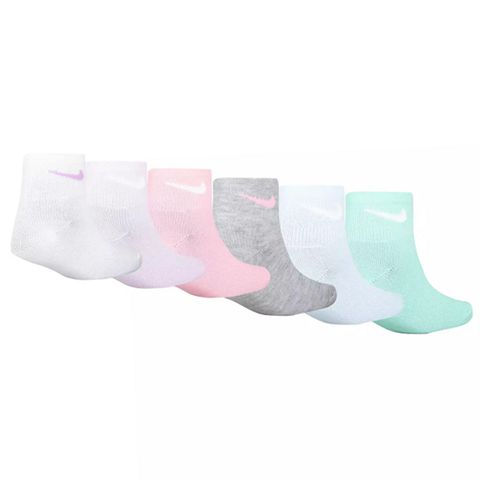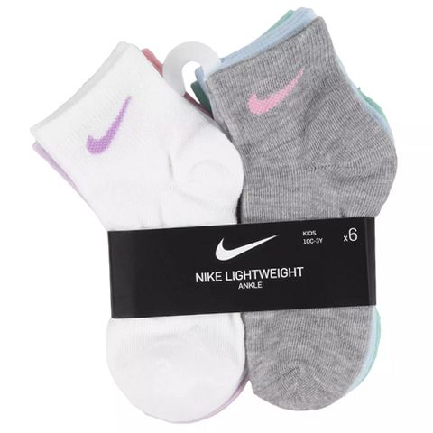 These Nike Little Girls Lightweight Ankle Socks are designed to provide exceptional comfort and support for young active girls. Made from a high-quality blend of polyester and elastane, the fabric is soft, stretchy, and breathable to ensure feet stay dry and comfortable throughout the day. The socks feature breathable panels on the top that promote ventilation, reducing moisture buildup during physical activities. Cushioned reinforcement at the toes and soles enhances durability, making them resistant to wear and tear from daily use. The snug arch fit offers additional support, helping to keep the socks securely in place without slipping. Their ankle rise design makes them perfect for wearing with sneakers or athletic shoes, while the modern style and assorted colors add a fun touch to any outfit. Easy to care for with machine wash instructions, these socks are an excellent choice for little girls who enjoy running, sports, or casual wear.