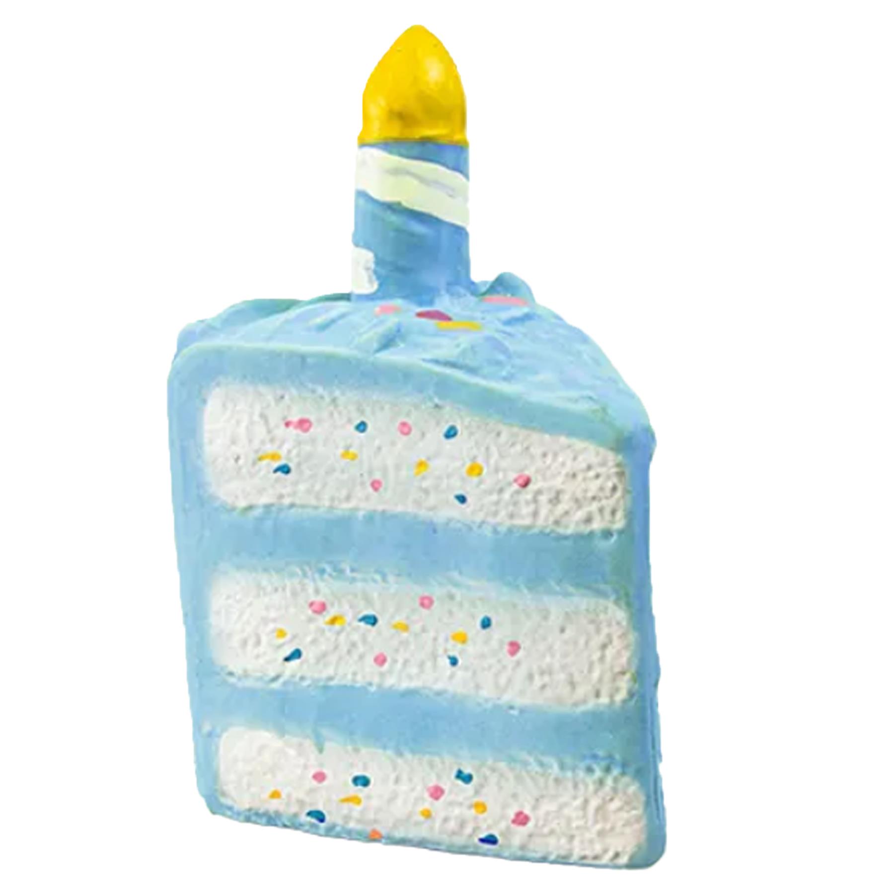 - These adorable toys are constructed from rubber, are super squeaky and designed to look like a birthday cake slice.
