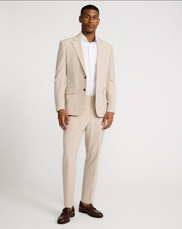 Details: Cut in a slim fit, these suit pants sit below the waist and feature a