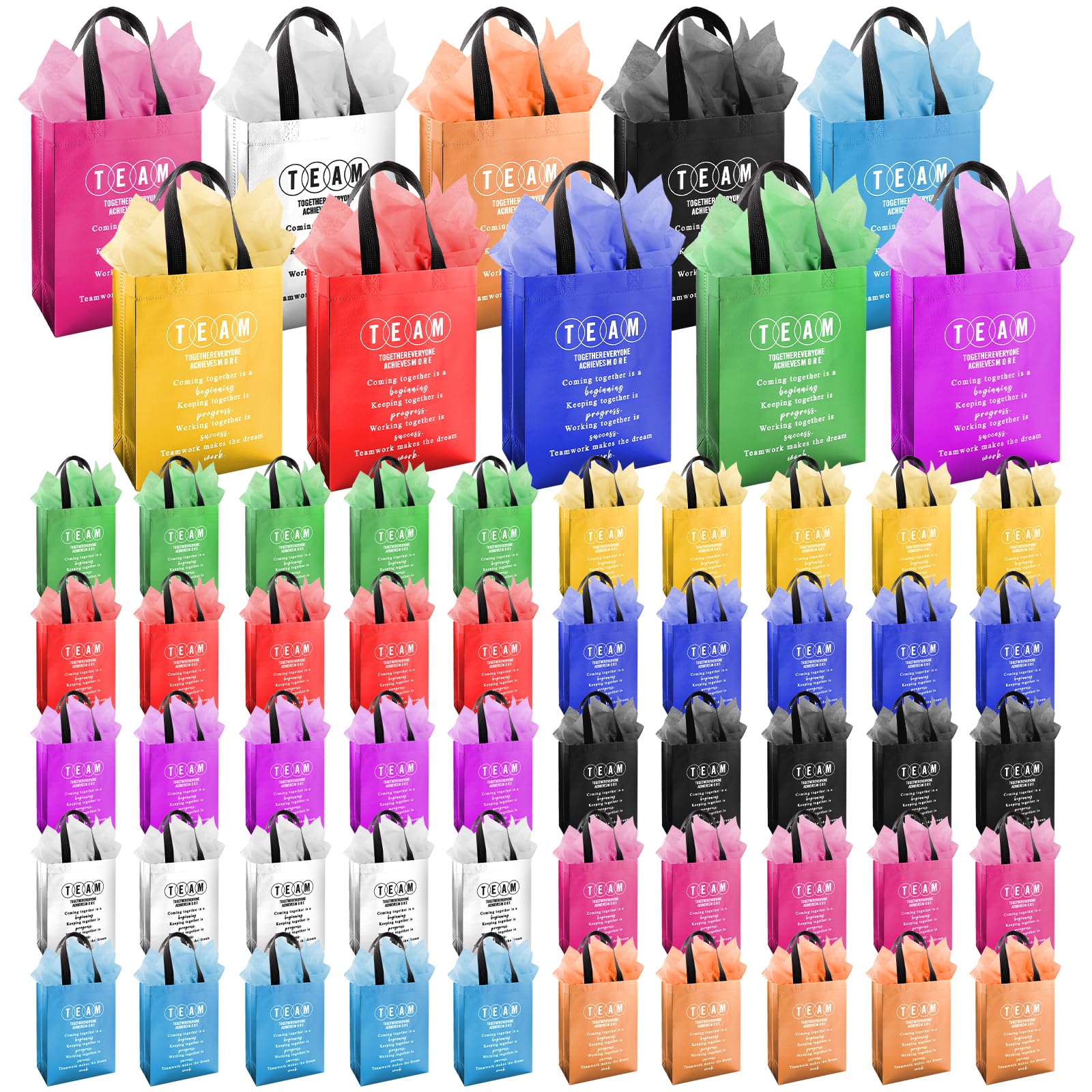 Make gratitude unforgettable with our 50-Pack Reusable Employee Appreciation Gifts Bags – the perfect way to say “thank you” in style! Designed for bulk gifting, these reusable bags are ideal for recognizing employees, cheering on teams, rewarding volunteers, or celebrating colleagues. Each bag comes with a matching tissue paper, adding a touch of elegance to your thoughtful gestures. Crafted from high-quality, durable non-woven fabric, these gift bags are built to last. They are waterproof, tear-resistant, and lightweight, with reinforced handles for comfortable carrying. Easy to fold and , they’re ready to go wherever you are – from the office to outdoor events. What sets these bags apart is their inspiring team-themed design. Each bag features motivational quotes that uplift spirits and reinforce a positive culture. Whether it’s for a corporate anniversary, Week , a Friendsgiving gathering, or a sports season wrap-up, these bags turn simple gifts into meaningful moments. With a spacious 8x10x4-inch capacity, they comfortably hold mugs, beauty products, snacks, flowers, and more. Versatile and practical, they work great as party favors, shopping totes, travel bags, or gym companions. Perfect for bulk appreciation gifting – whether you're thanking staff, customers, teachers, nurses, or sports teams like football and baseball. Elevate your gifting experience with bags that are as functional as they are heartfelt.