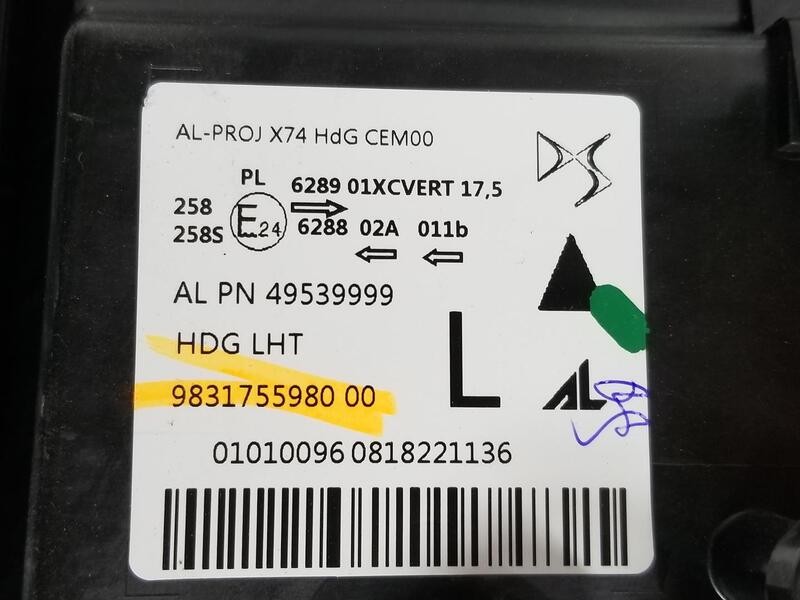 9831755980 scheinwerfer links 1649206180 2051995 DS 7 CROSSBACK HIBRIDO 220 2017