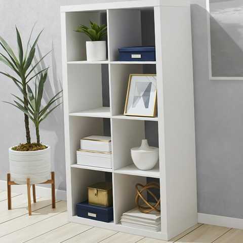 Add function and style to your home with the Better Homes & Gardens 8-Cube Storage Organizer. Available in multiple finishes, this cube organizer features eight 13" x 15" x 13" compartments, the perfect to display books, collectibles, photos, artwork, storage bins and baskets. The open back design makes it easy to manage cords and cables of electronics. This sturdy bookcase can stand vertically or horizontally to best make use of space.