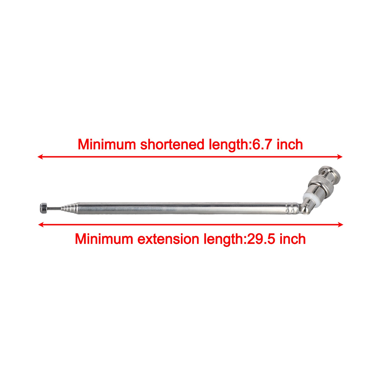* 7-teilige Teleskop-BNC-Funkantenne aus Edelstahl. Diese BNC-Funkantenne kann frei gedreht werden, um die Position einzustellen für optimale Signalempfang.