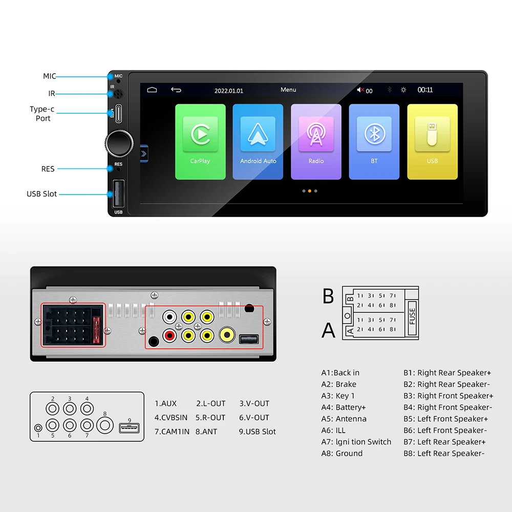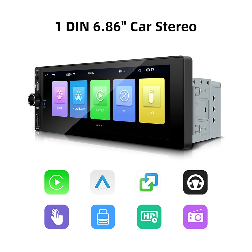 1. 6.86-inchuniversal screen 1 din car stereo HD touch screen small body
