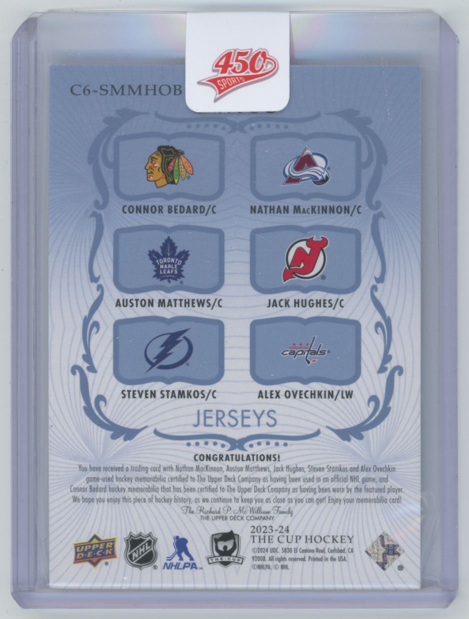 2023-24 UD The Cup Sixes Jerseys MacKinnon / Hughes / Bedard + 11/15