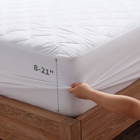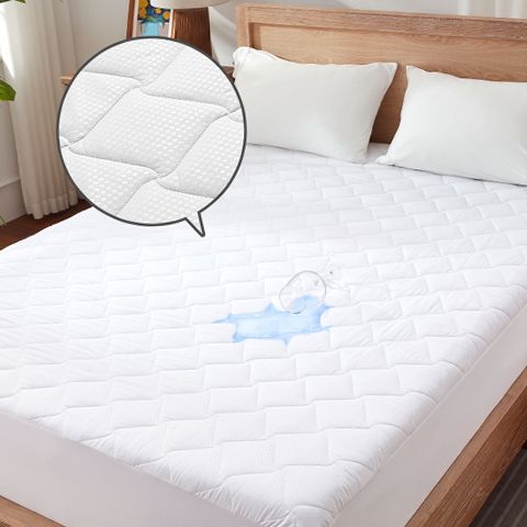 The Sonive Waterproof Mattress Protector Pad offers reliable, 100% waterproof protection against moisture, dust, sweat, and liquids while maintaining breathability for a comfortable night's sleep. Designed with a 38 cm deep pocket and elastic edges, it fits securely on mattresses up to 38 cm deep, ensuring full coverage and protection. The quilted microfiber surface adds softness and durability, extending the life of your mattress. Machine washable and dryer-friendly, this OEKO-TEX Standard 100 protector is free from harmful substances, making it safe for all ages.