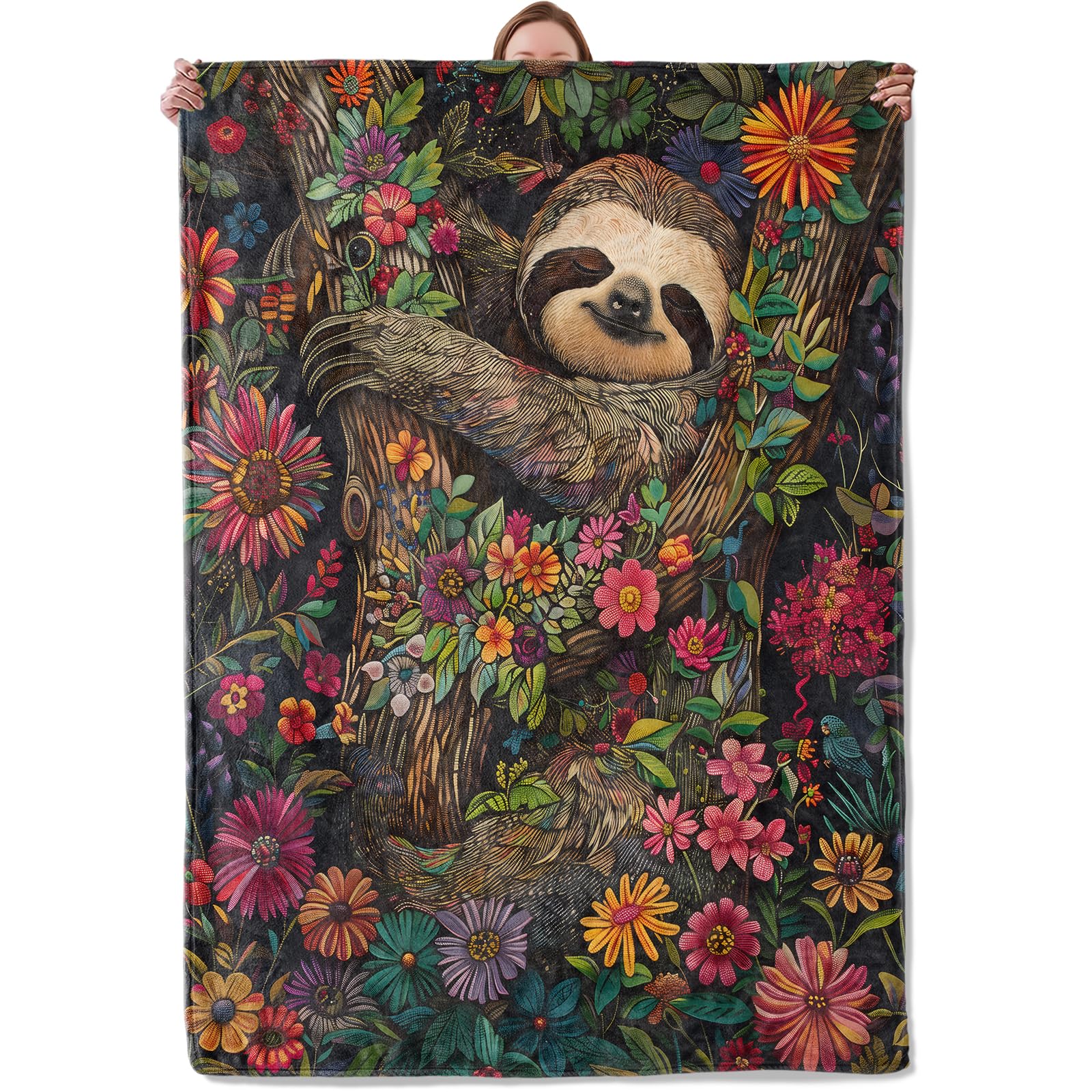 Floral Sloth Blanket, Sloth Theme Flannel Blanket Gifts for Women, Soft Warm Lightweight Sloth Blankets for Living Room Home Sofa Travel Decor 50" x 60"